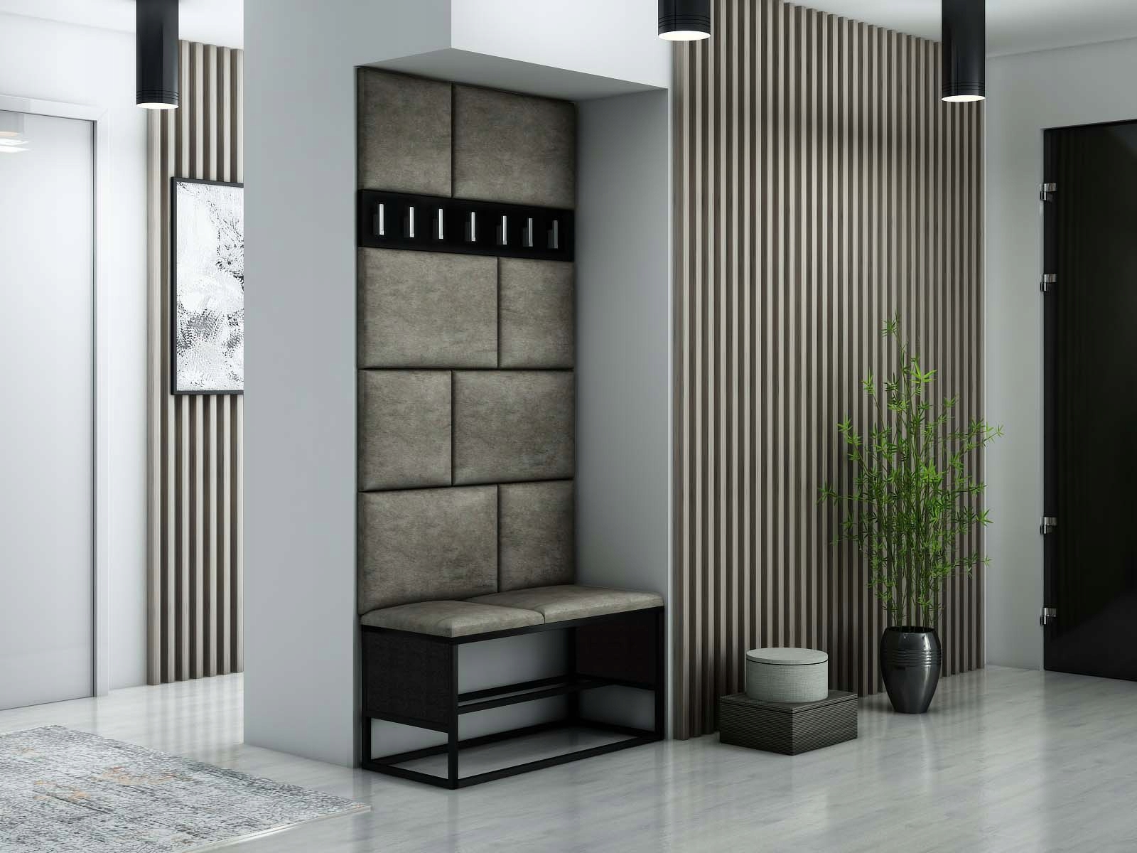 Шафа для взуття з сидінням Лофт – це сучасне та оригінальне рішення для людей, які хочуть створити унікальне облаштування вашого холу. Шафи для взуття на металевому каркасі в чорному матовому кольорі та сидінні, оббиті високоякісною велюровою тканиною підкреслюють промисловий характер і радує проста форма. Під сидінням можна помістити до восьми пар взуття! Набір b> можна придбати додаткові панелі , створивши набір відповідно до ваших потреб.