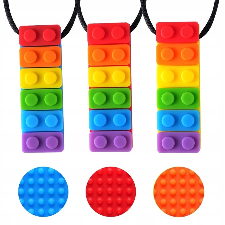 Сенсорне жувальне намисто розроблено з невеликими виступами на задній частині, тоді як спереду є великі та чіткі виступи для задоволення ваших різноманітних сенсорних потреб. Вони м’яко потирають ясна дитини та забезпечують миттєвий масаж ясен, полегшують прорізування зубів, стрес і тривогу.