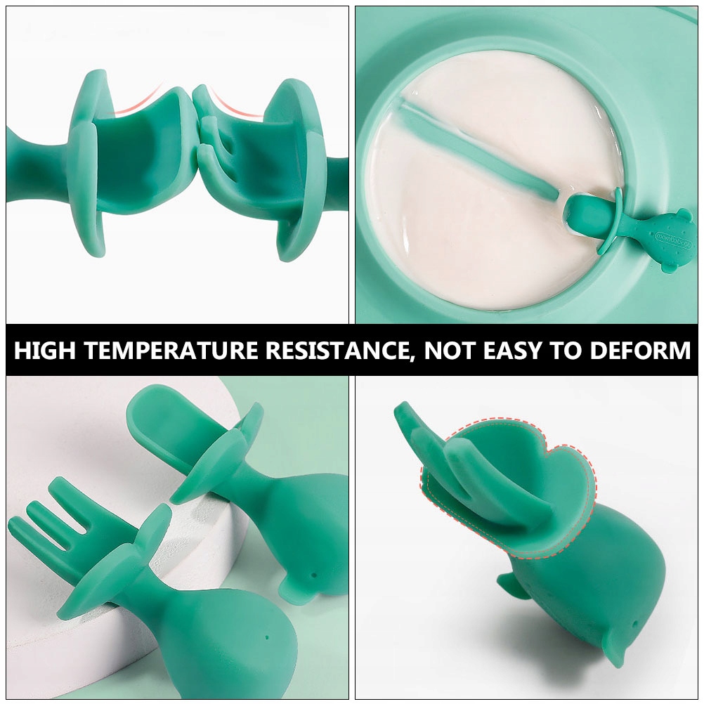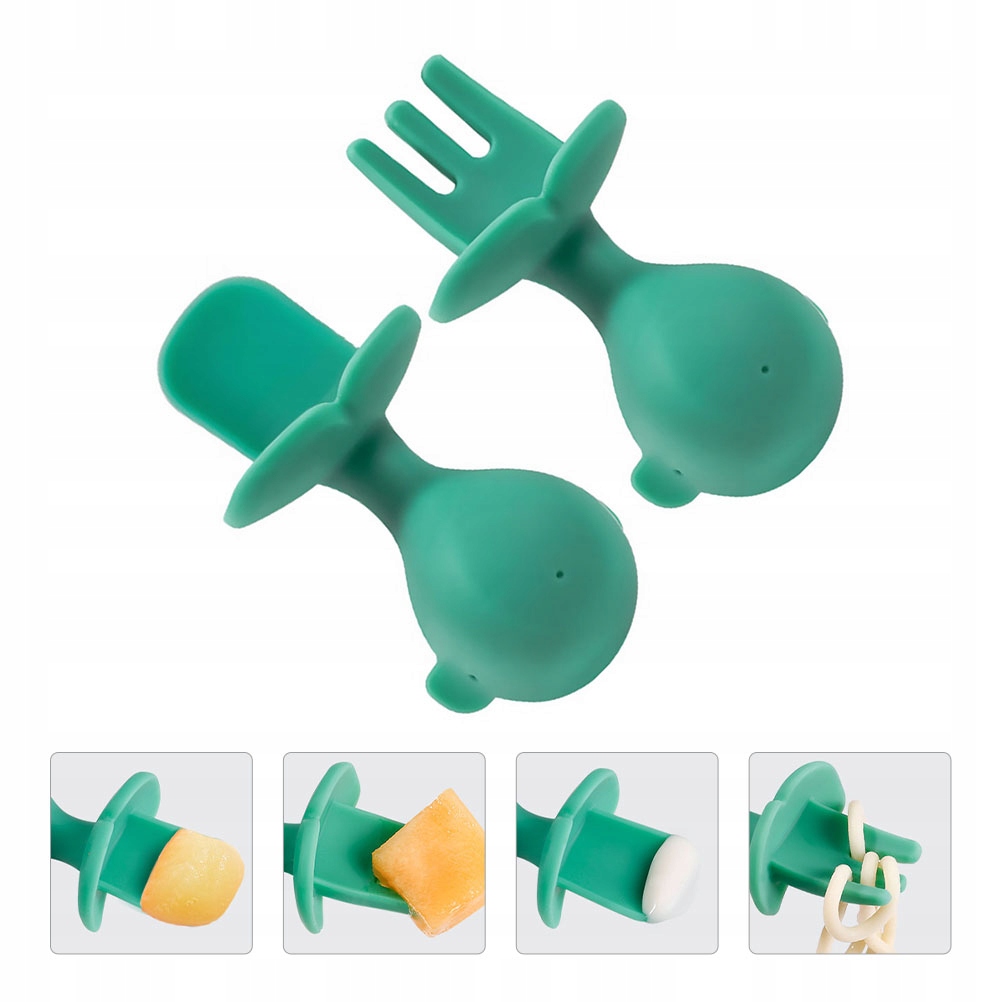 Ця головка ложки та кінчик виделки круглі, гладкі, завдяки чому вашій дитині зручно їсти.