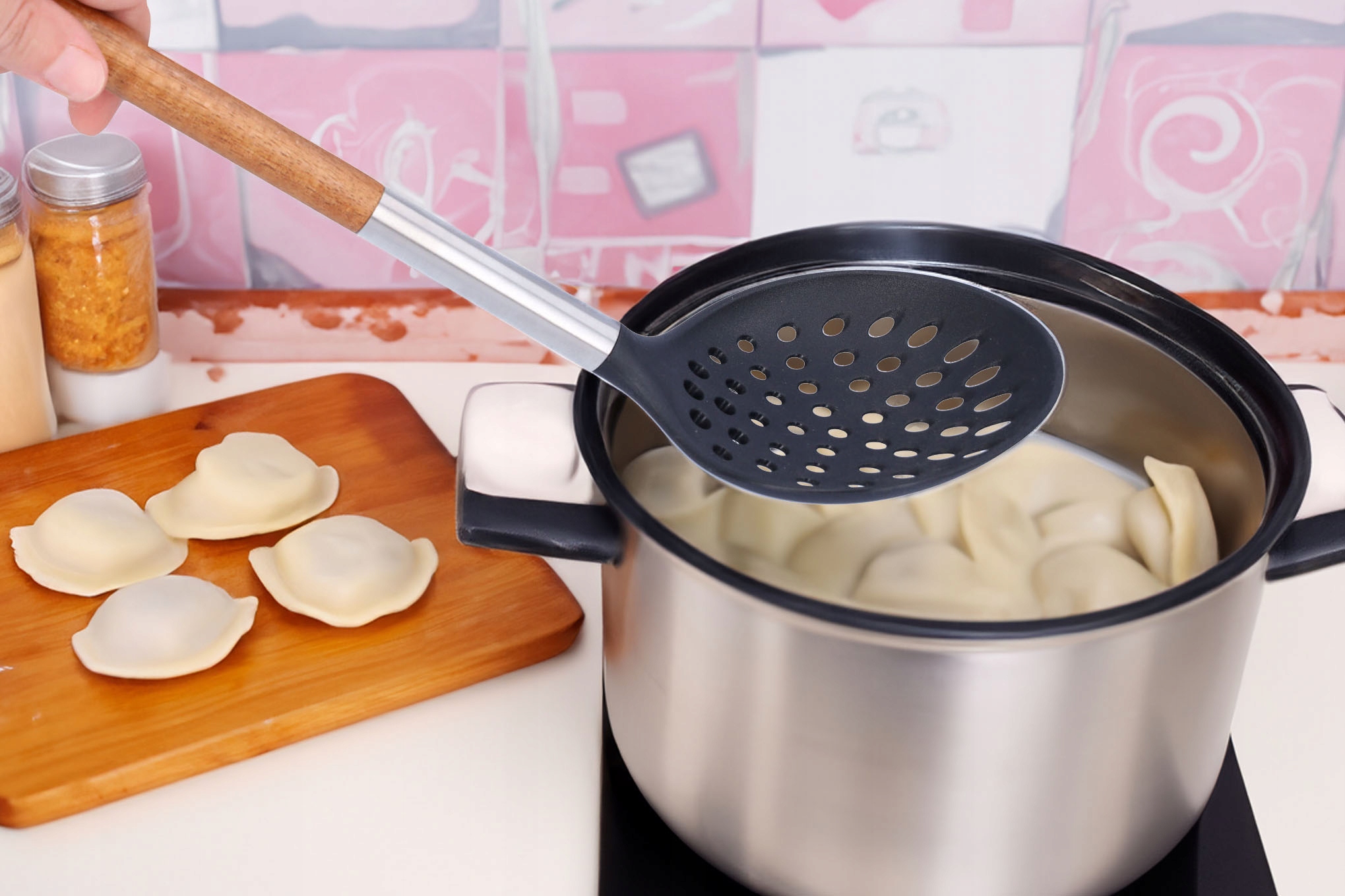 ЛОЖКА ДЛЯ пельменів дерев'яна 34 см, кухонна міцна шумівка