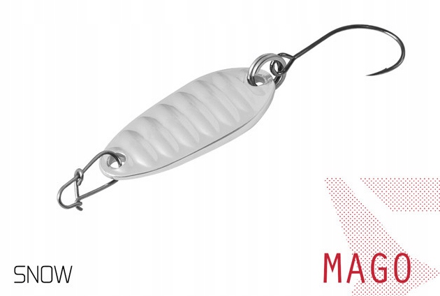 Їх корпус виготовлений зі сплаву цинку. Оснащені якісним одинарним гачком від БОМБИ! серії. Вони також мають HardLure і FASTLOCK MICRO SNAP, щоб ви не втратили рибу. Ці приманки також дуже ефективні при лові дрібної хижої риби на озерах або річках. Вони дуже спокусливі і привабливі для хижаків, що видно з першого погляду. Симетрична форма та блискуча обробка приманки MAGO відображає їхні рухи, що ідеально імітує живу наживку.