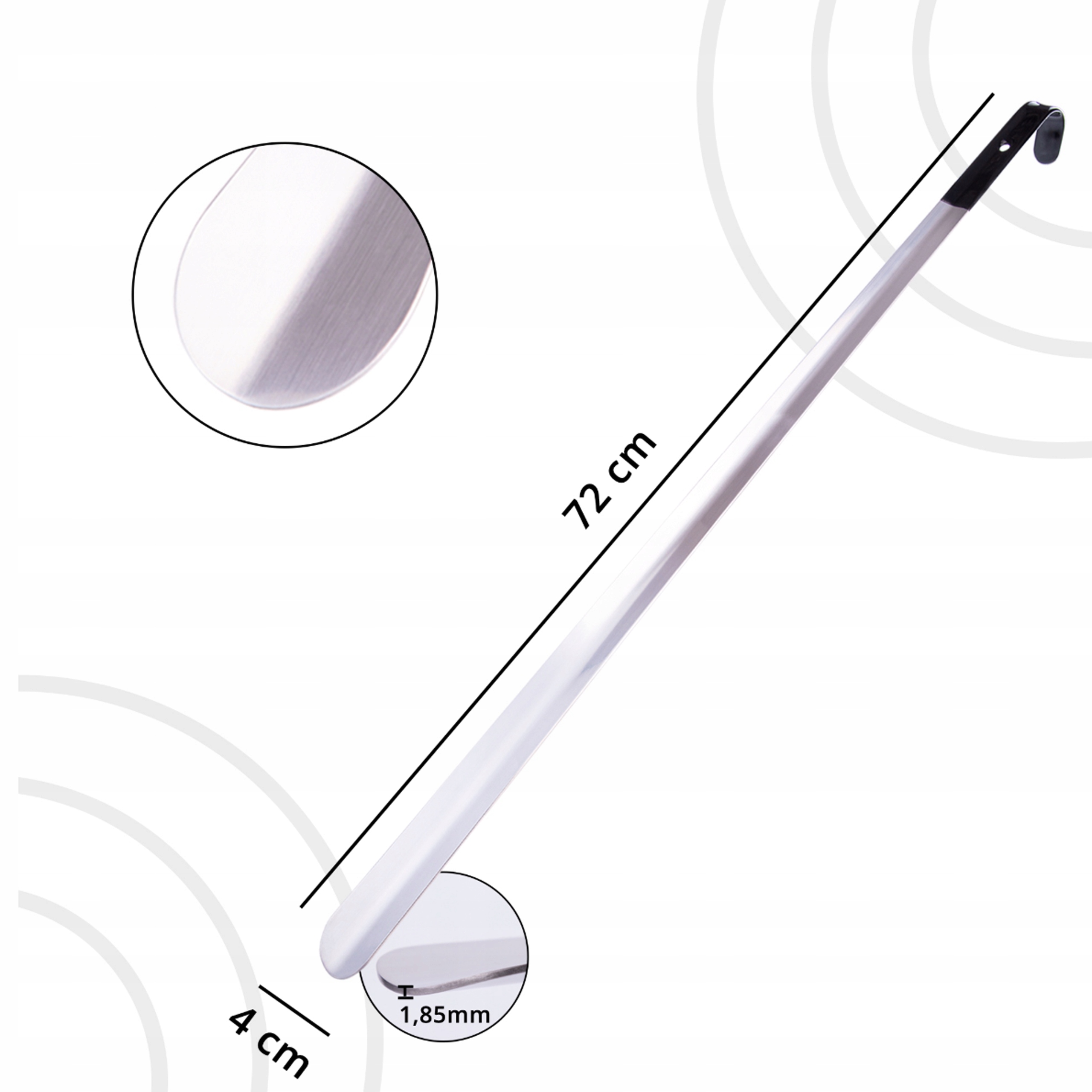 Завдяки довжині до 72 см наша ложка дозволяє взуватися, не згинаючи спини та не напружуючи коліна. Це ідеальне рішення для всіх, хто хоче піклуватися про свій хребет і повсякденний комфорт.