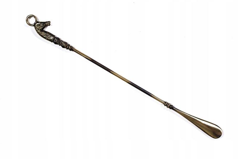 Ми представляємо ложку для взуття у довгу версію, декоративне зображення коня головки в ручці. Патінований продукт, відшліфований у відкритих місцях, темніше в куточках та крихах. Ціле покрито безбарвним лаку, щоб запобігти окисленню латуні. Суцільно виготовлення акторської ролі - ложка буде виконувати своє завдання протягом багатьох років. Польський продукт - ми підтримуємо польські ремесла.