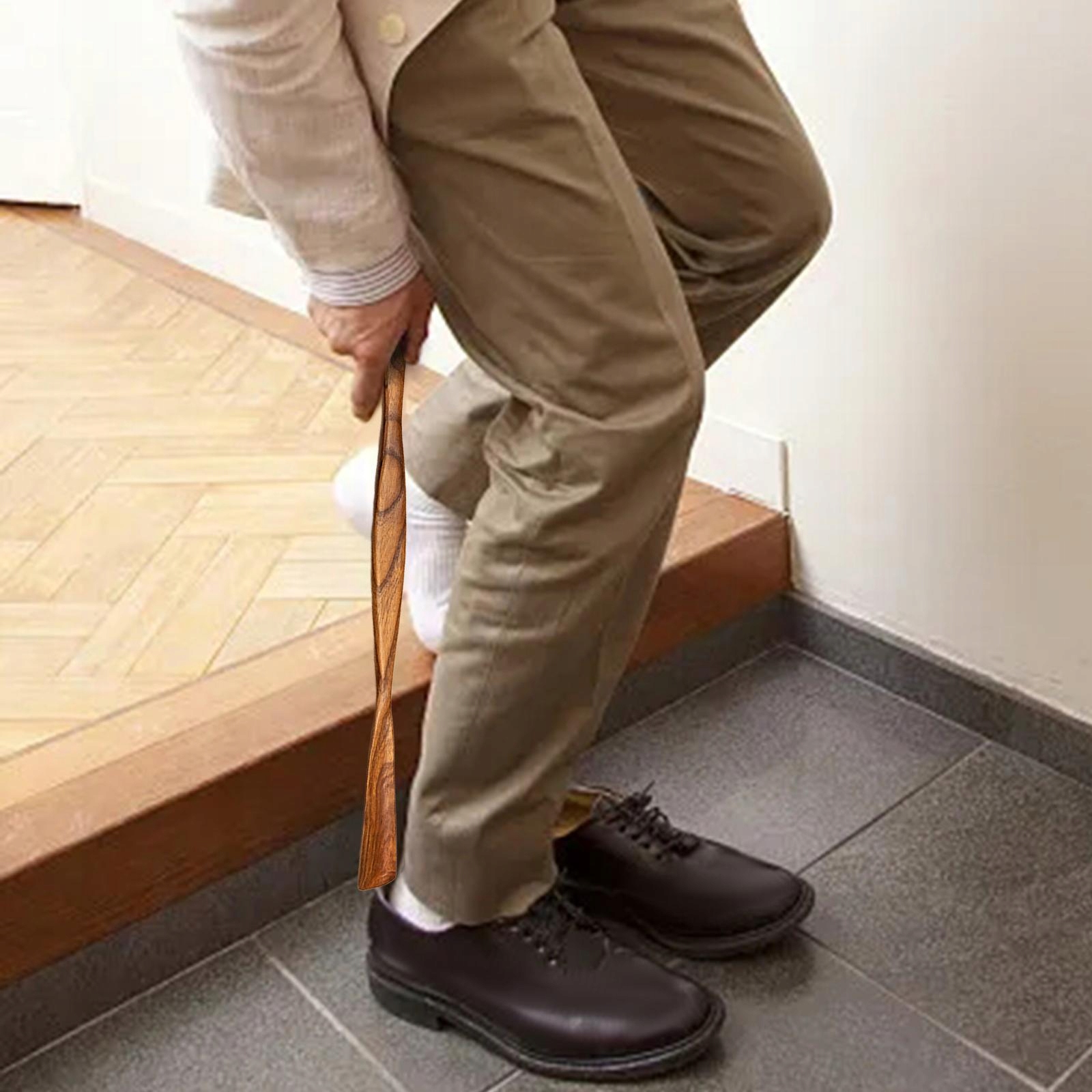 4[простий у використанні] дерев’яне взуття, зручне та зручне для використання, легко ковзає в задню частину взуття, полегшує надягання взуття, допомагає зменшити вигин.