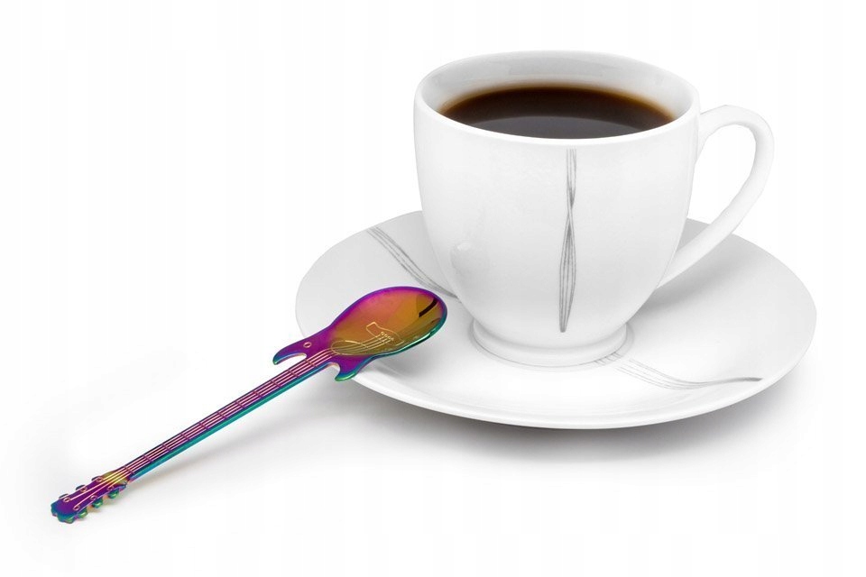 Guitarist's Spoons — красиві ложки у формі електрогітари. Чи можна їсти з ними йогурт або підсолоджувати чай? Звичайно! Гітари зігнуті таким чином, що ложки Гітарист можна використовувати не тільки як прикрасу для смачного торта, але і як звичайні ложки з набору столових приборів. У комплект поставки входить 3 ложки для гітари: срібляста, чорна і кольорова. Кожен унікальний!
