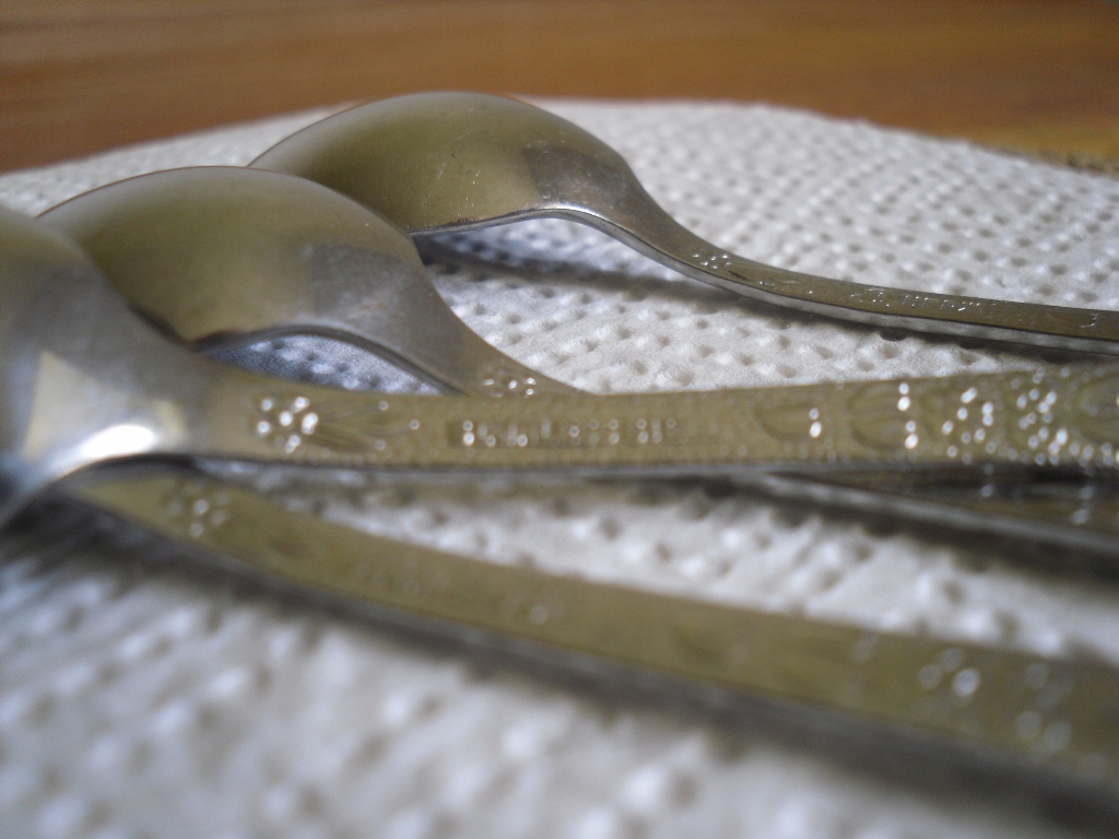 Ласкаво просимо на мій аукціон. На аукціонах я зазвичай пропоную вам речі періоду Польської Народної Республіки. На цьому аукціоні пропоную ОРИГІНАЛЬНІ старі столові ложки 4 шт. Дуже маленькі ложечки, для чашок. Ложки цілі, НЕ погнуті, мають нормальні сліди використання. Маленькі кавові або чайні ложки. Ложки з дуже гарно оздобленою ручкою і, що рідко буває, оздоблені з обох сторін. На звороті всі ложки мають однаковий підпис STAINLES STEEL.. /див. фото/. Ложки очищені. Ви купуєте те, що на фото.