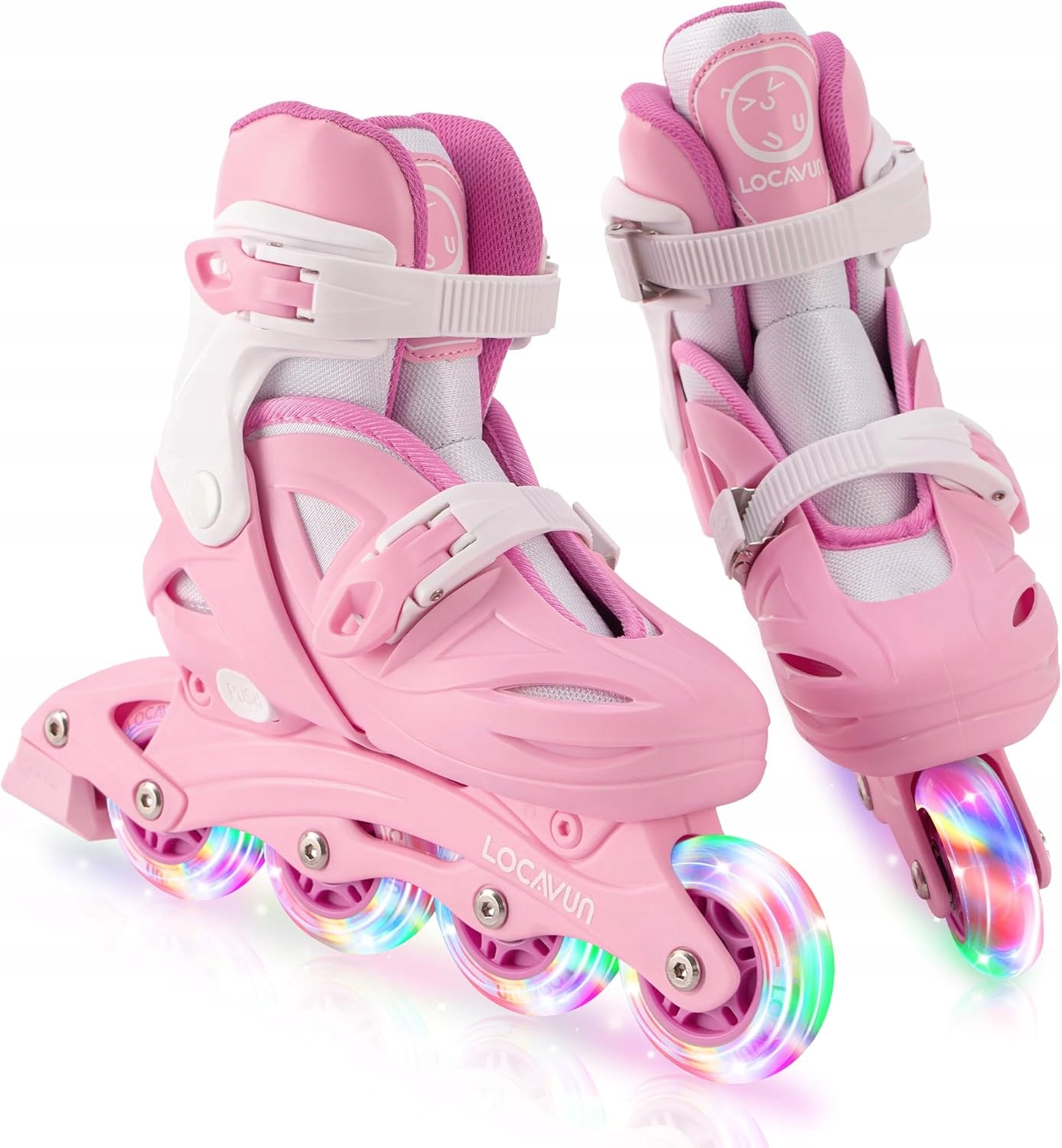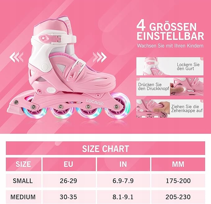 - Всі колеса світяться - миготливі колеса засвічуються автоматично під час руху на скейтборді. Я не уявляю, наскільки вони будуть щасливі! Ідеальний подарунок для дівчат. Замки, смуги та пряжки утворюють трикутник для захисту дітей від травм. М’яка внутрішня підкладка робить скейтбординг більш комфортним.