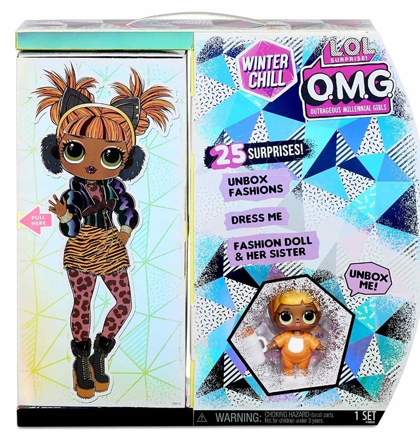 L.O.L. Сюрприз О.М.Г. Winter Chillце веселий досвід відкриття з модною лялькою та колекційним L.O.L. Сюрприз. Красива подарункова упаковка була розроблена так, щоб дівчата могли відчути захоплення від відкриття аж 25 різних елементів набору на кожному етапі розпакування наступних сюрпризів. Барвиста коробка має форму гардеробної - примірочної та зони охолодження, що ідеально відповідає тематиці серіалу, але також може використовуватися під час гри. Компанія O.M.G. в одній частині коробки захована лялька, а в іншій її сестричка. Прозорі вікна відкривають частину секретного вмісту. Сюрпризи включають аксесуари для стилізації ляльки, від крутого одягу до різноманітних аксесуарів, напр. головні убори, окуляри, взуття. Все це дозволяє створити унікальну та оригінальну зимову укладку. Тому що L.O.L. ляльки Сюрприз O.M.G. ось які вони - унікальні та оригінальні!