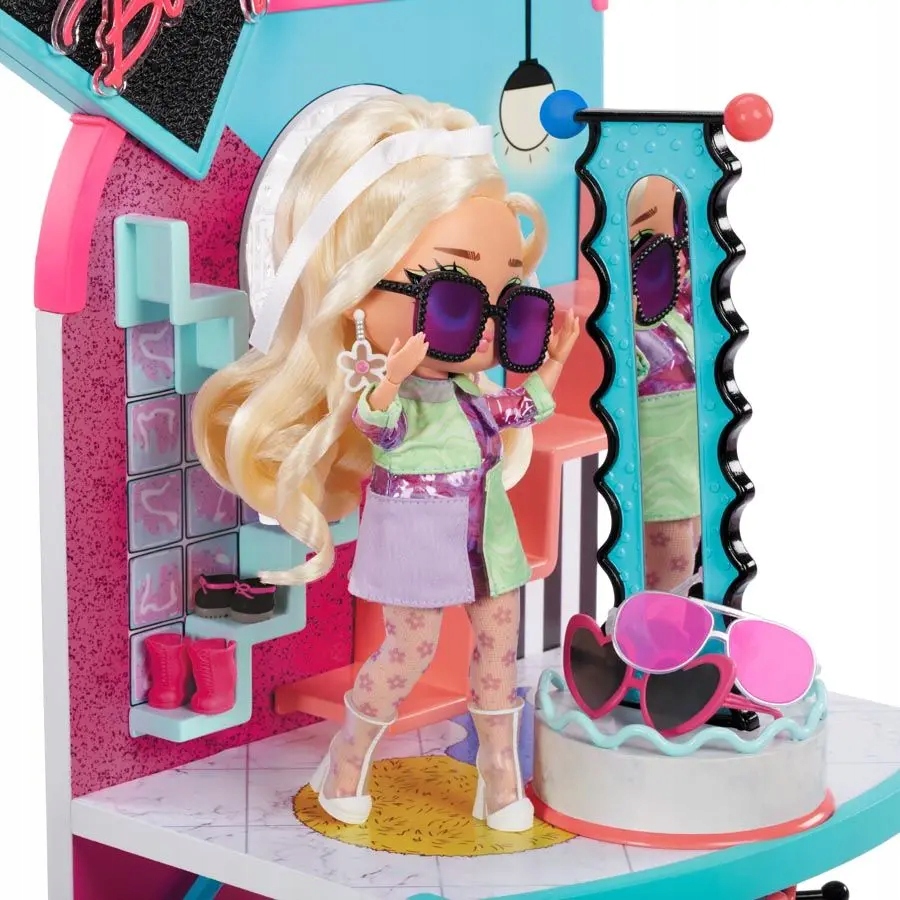 Цілком новий будинок, повний сюрпризів від LOL Surprise! Двоповерховий башмак з примірювальною для ляльок Lol Surprise. Вибравши свій наряд, ляльки можуть піти до каси, щоб завершити покупку та пригоститися смачним пончиком і холодним напоєм. Ідеальний набір для шанувальників LOL Surprise як подарунок та багато іншого!