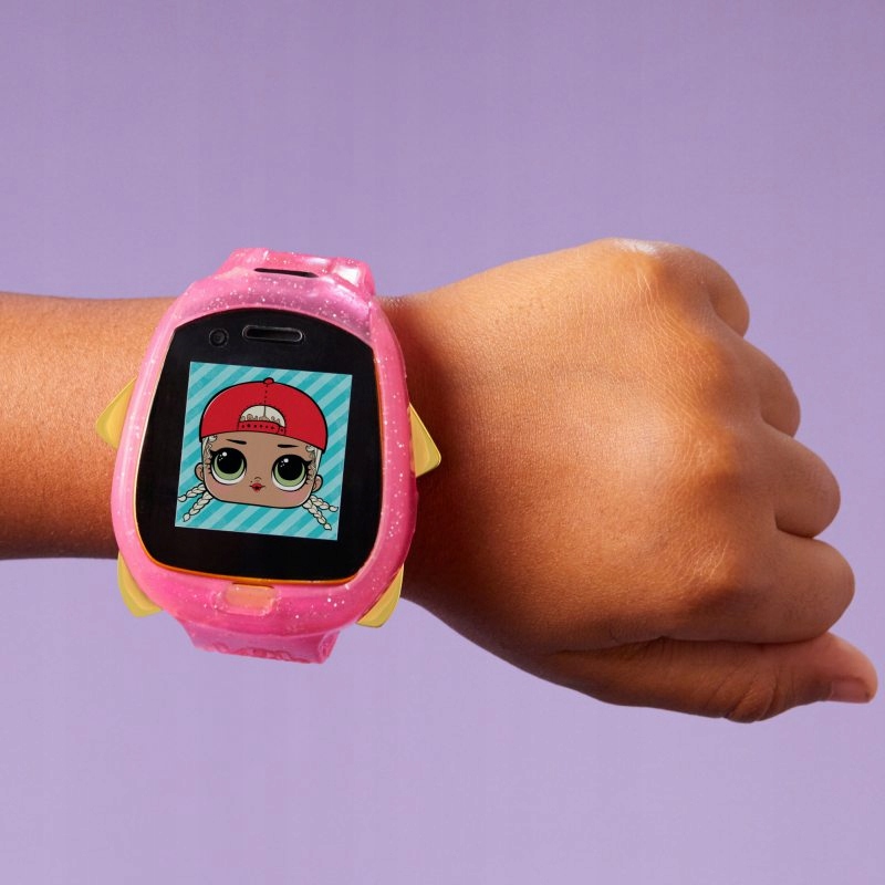 SmartWatch L.O.L. Сюрприз може так багато! Робіть фотографії та відео за допомогою подвійних камер, відстежуйте кроки за допомогою вбудованого крокоміра, вибирайте круті теми для відображення на циферблаті та грайте в безліч веселих ігор, щоб розблокувати нові функції та нагороди! SmartWatch допомагає дітям навчитися визначати час як на аналогових, так і на цифрових циферблатах! Також містить календар, секундомір, таймер зворотного відліку, нагадування та будильник. Смарт-годинник можна носити на зап’ясті за допомогою ремінця, що входить у комплект, або прикріпити до одягу за допомогою затиску, що входить у комплект. Кліпса також виконує роль підставки для дисплея, коли використовується як будильник або для зарядки. Розумний годинник має сенсорний екран і захищений від бризок.