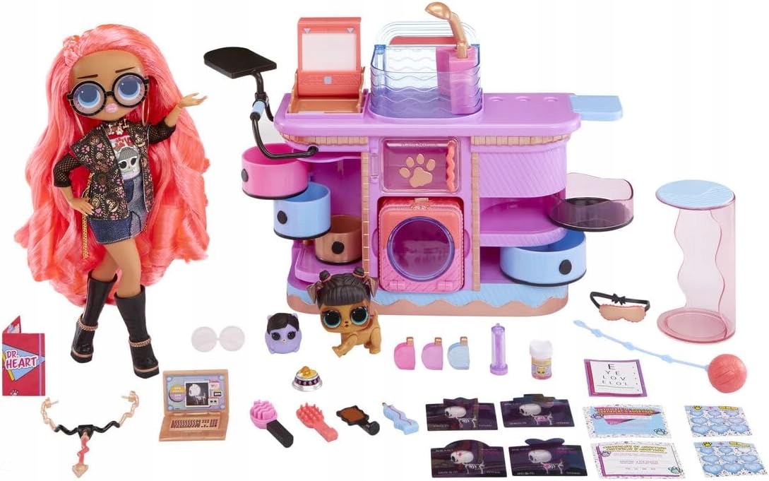 Ветеринарний набір LOL Surprise, в якому лялька LOL Dr Серце піклується про всіх тварин, щоб вони були здорові та почувалися якнайкраще. Зустрічайте Dr. Серце, ветеринар і власник клініки для тварин, і її особливі домашні тварини, хом’ячок Хелі Хеммі та песик Піксі Пап! Іграшка містить аксесуари на ветеринарну тематику для вигадування історій та інтерактивних рольових ігор.