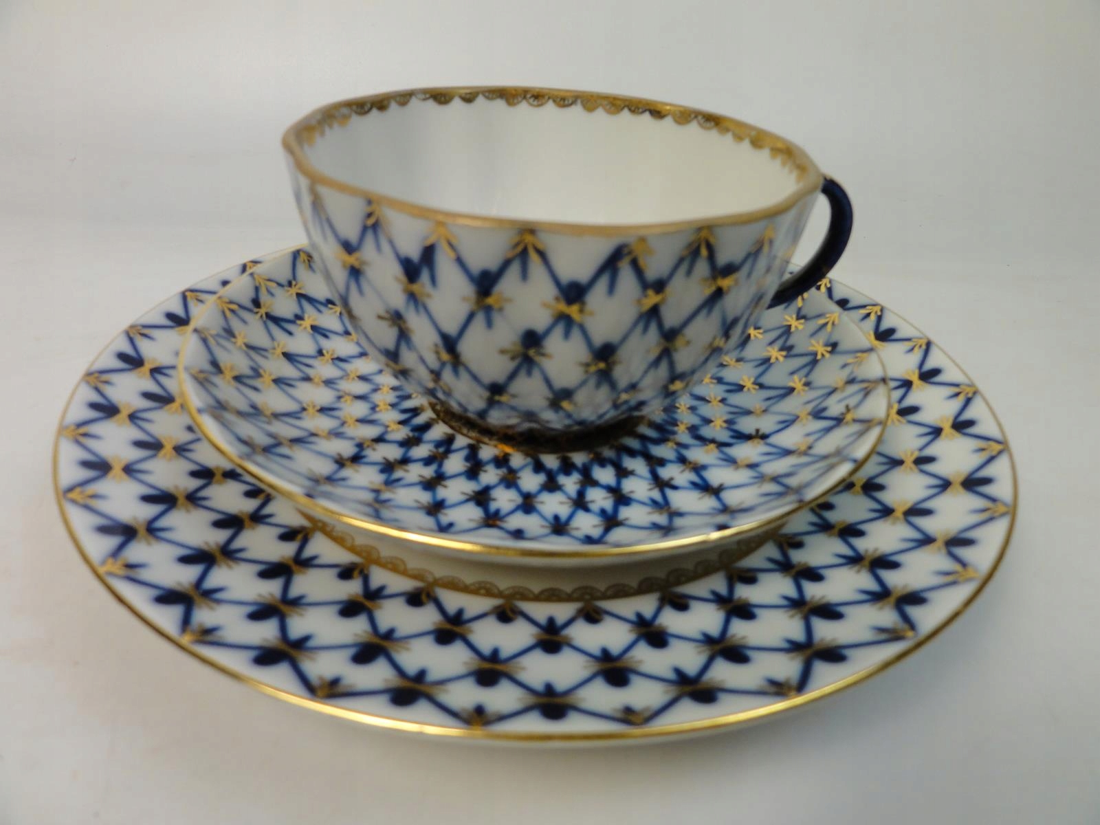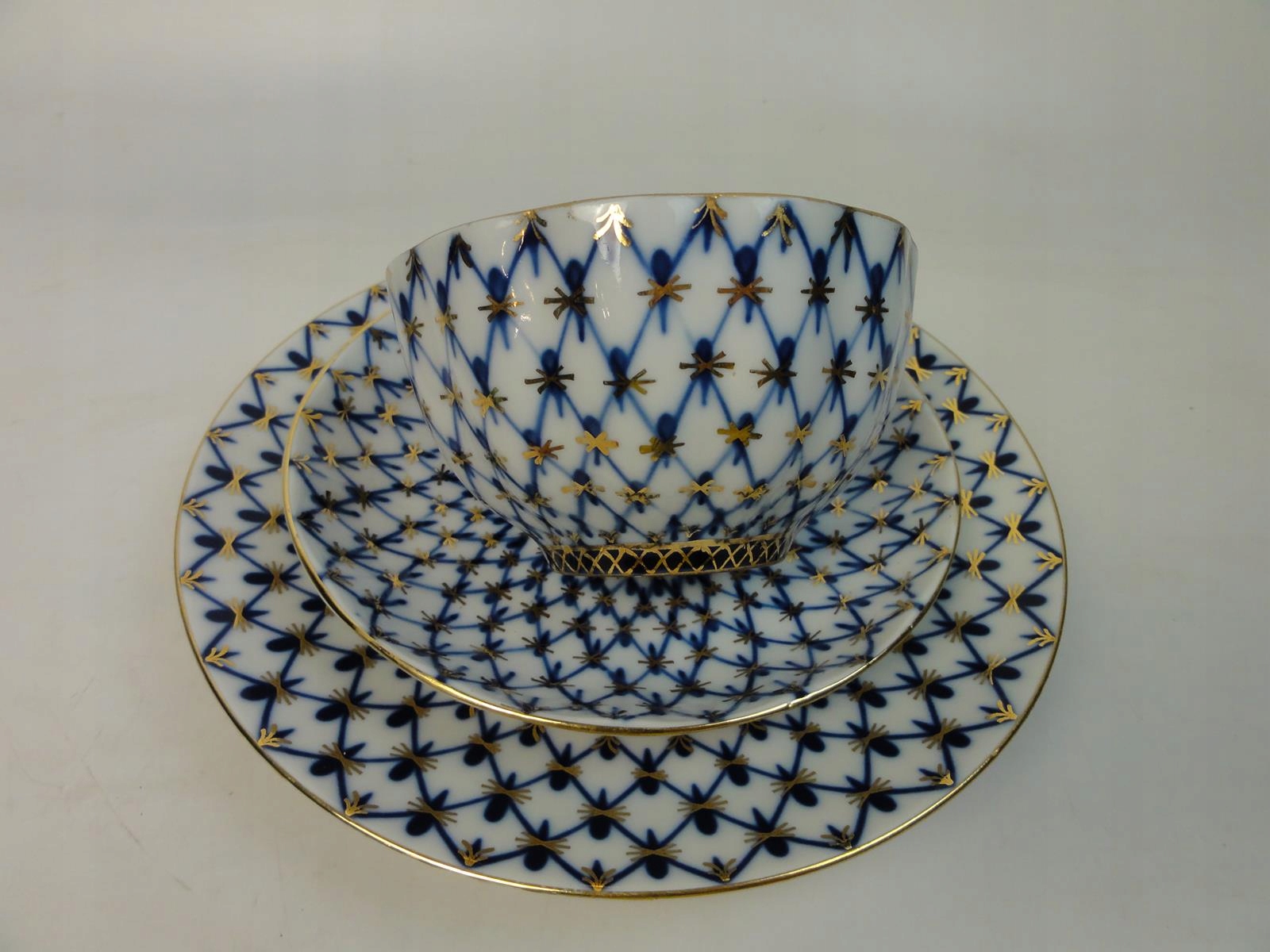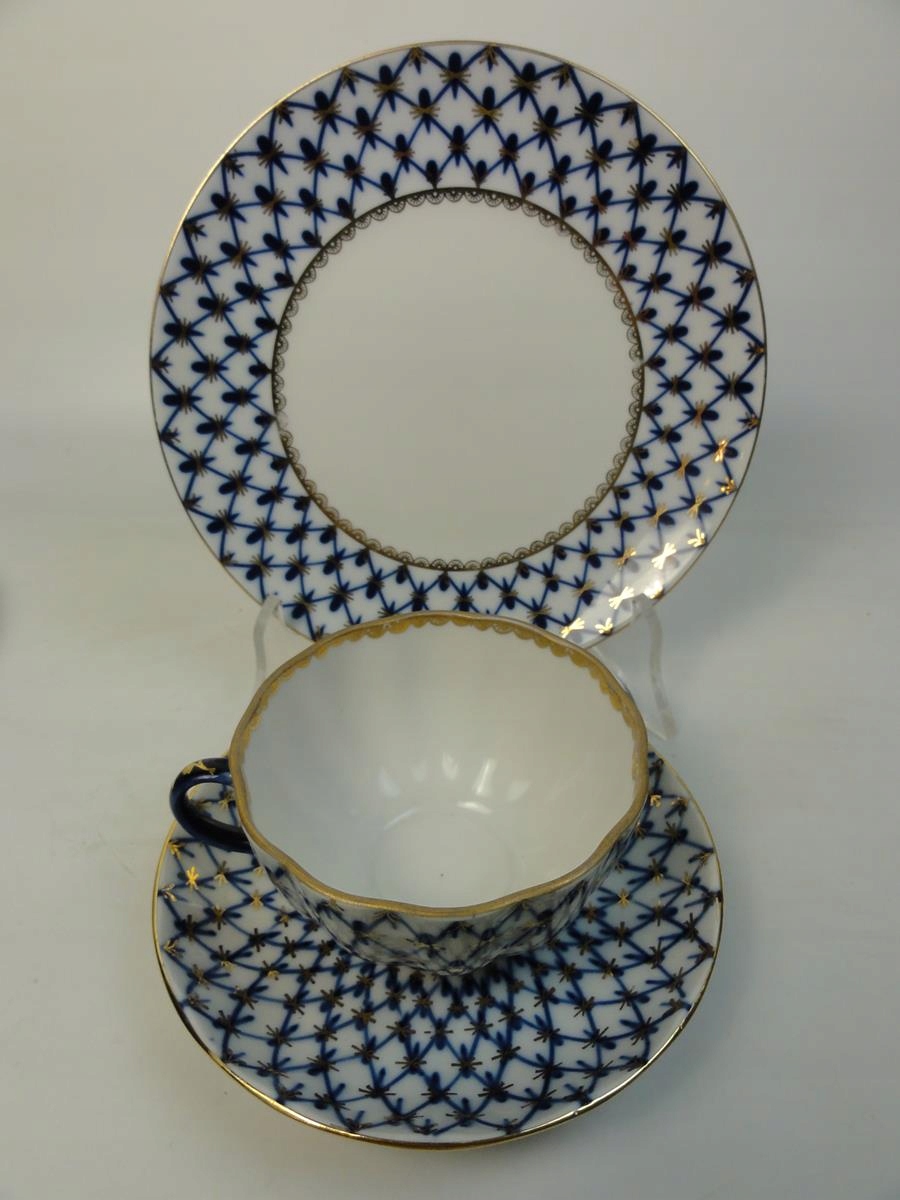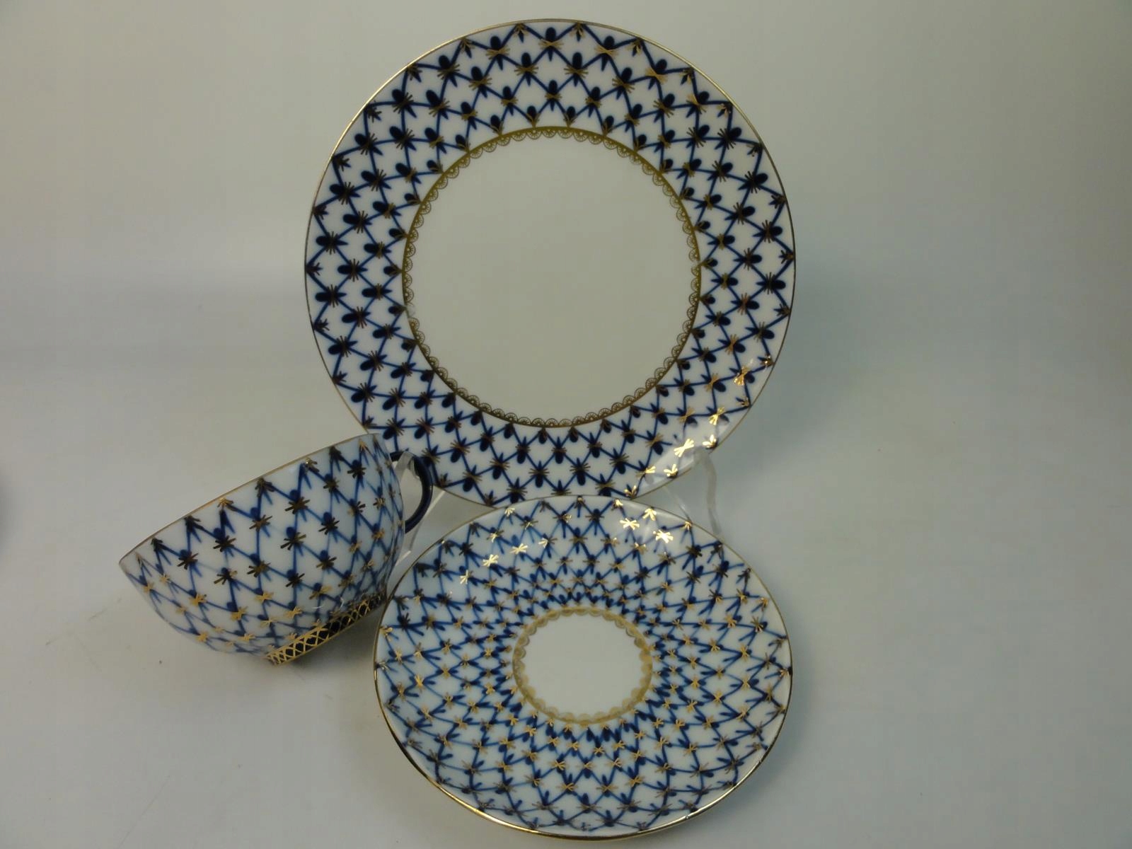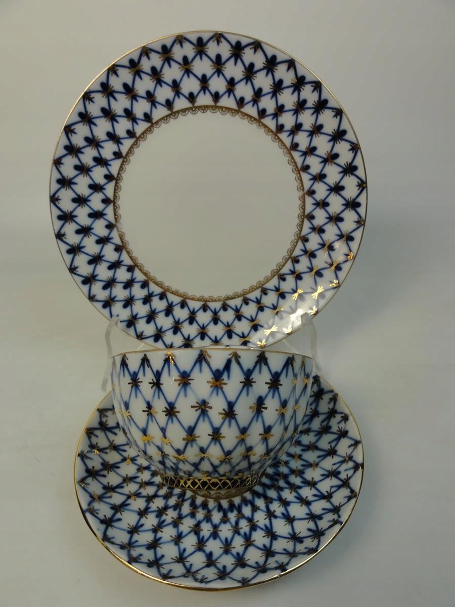 ЛОМОНОСОВ КОБАЛЬТОВА СІТКА НАБІР ДЛЯ СНІДАНКУ ЧАЙНЕ ТРІО