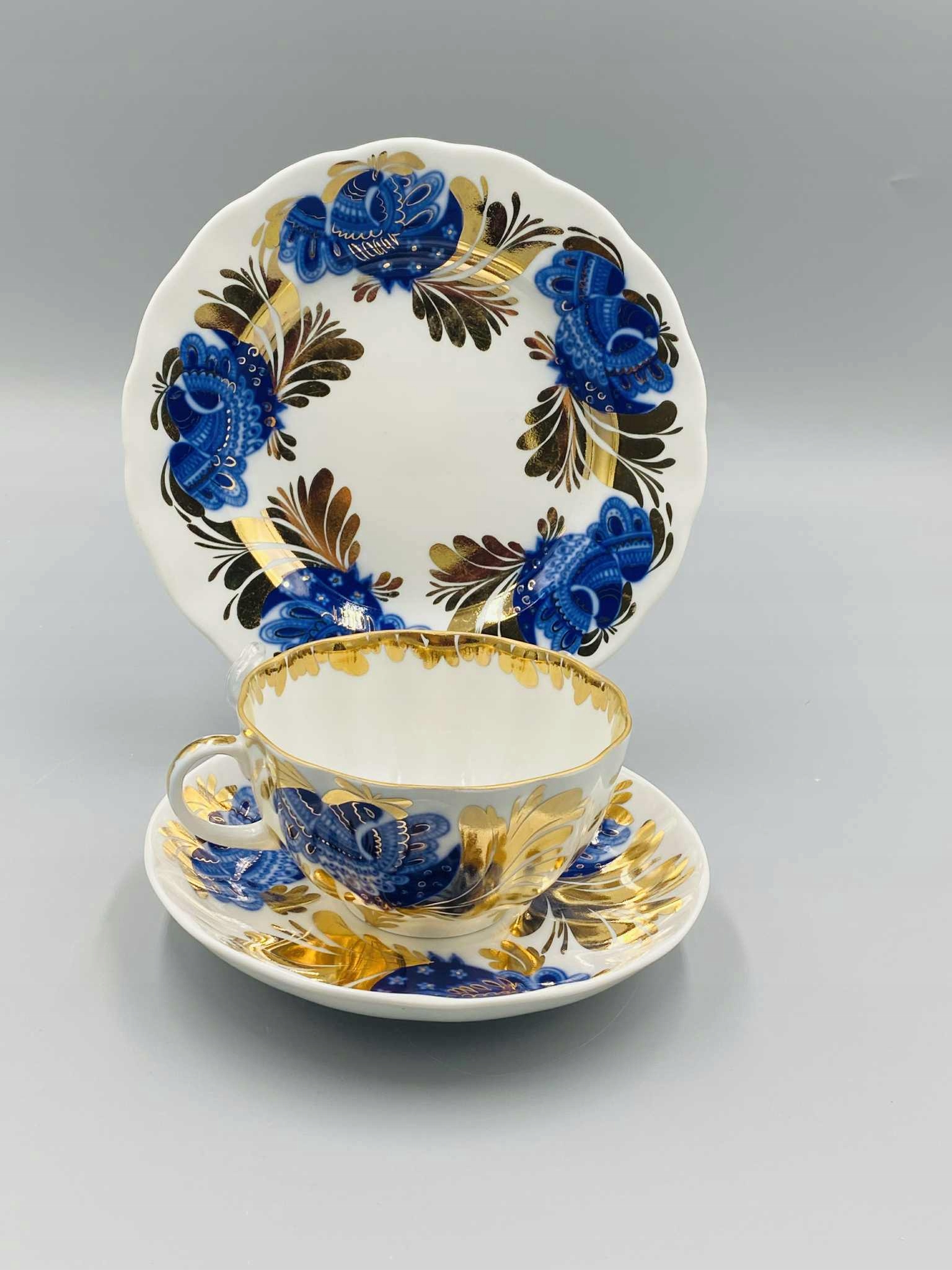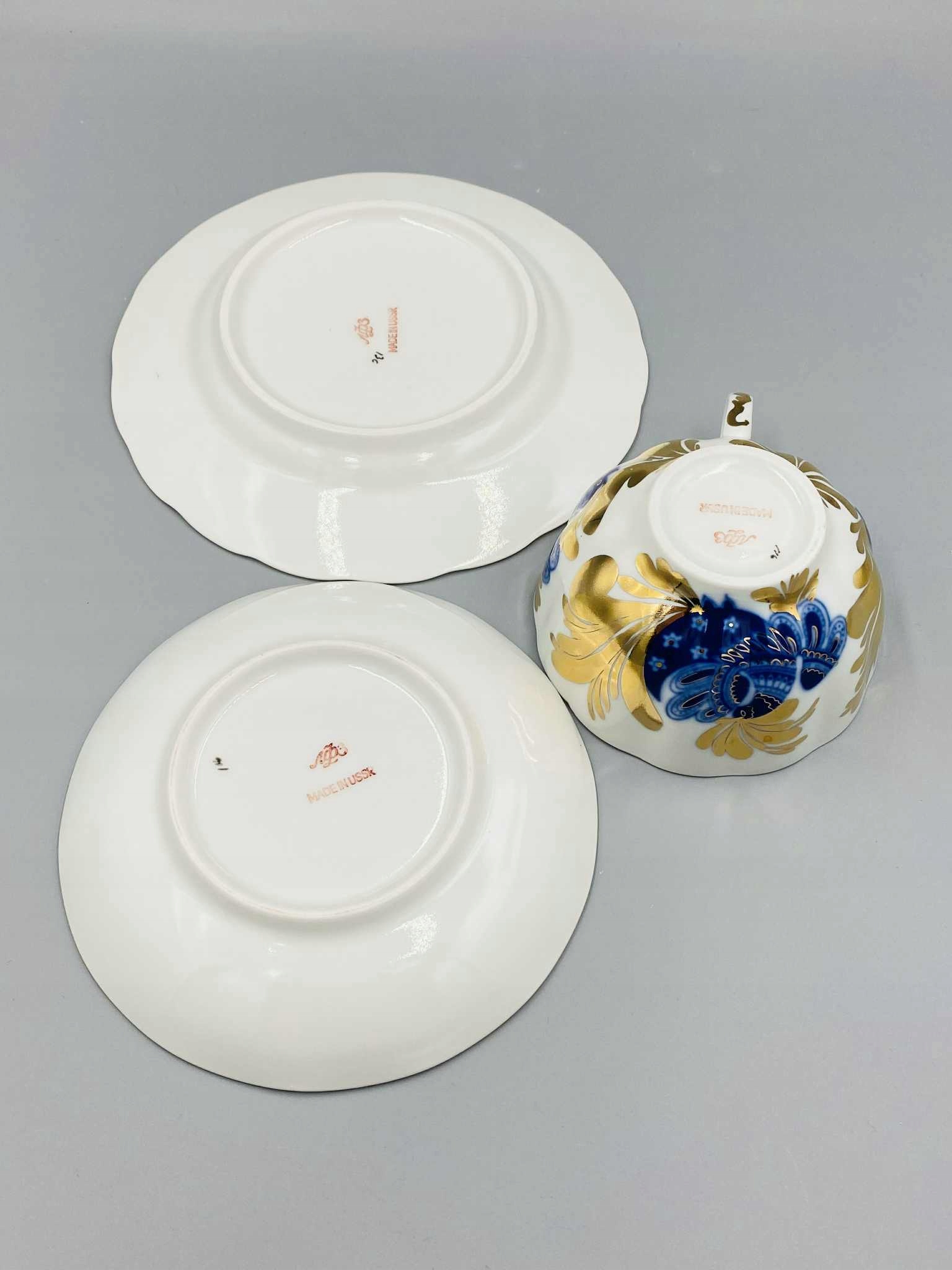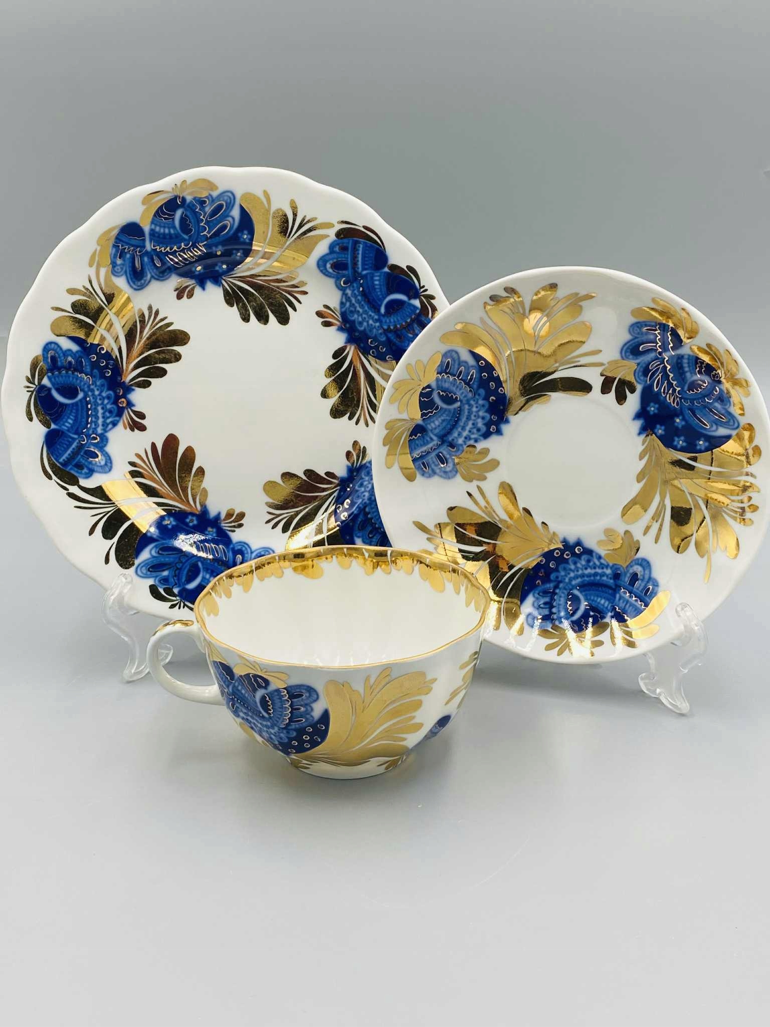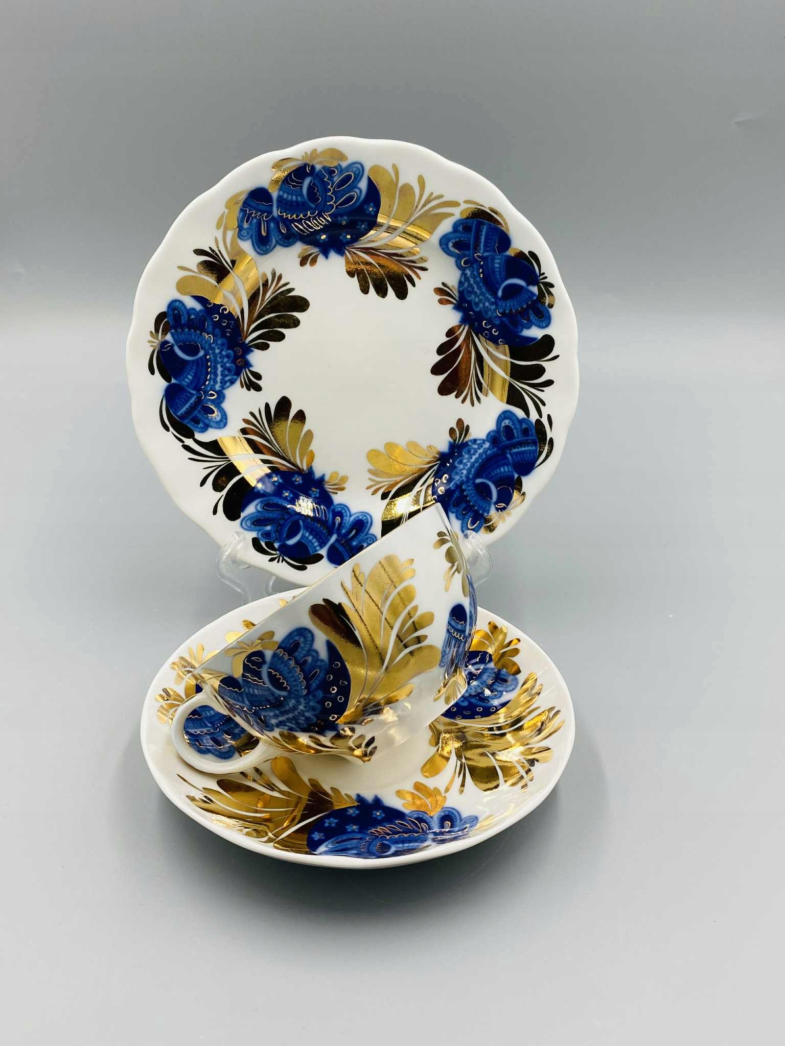 Чарівний набір для сніданку в кобальтово-золотій фарбі. Позолота вручну 22-каратним золотом, квіткові мотиви.