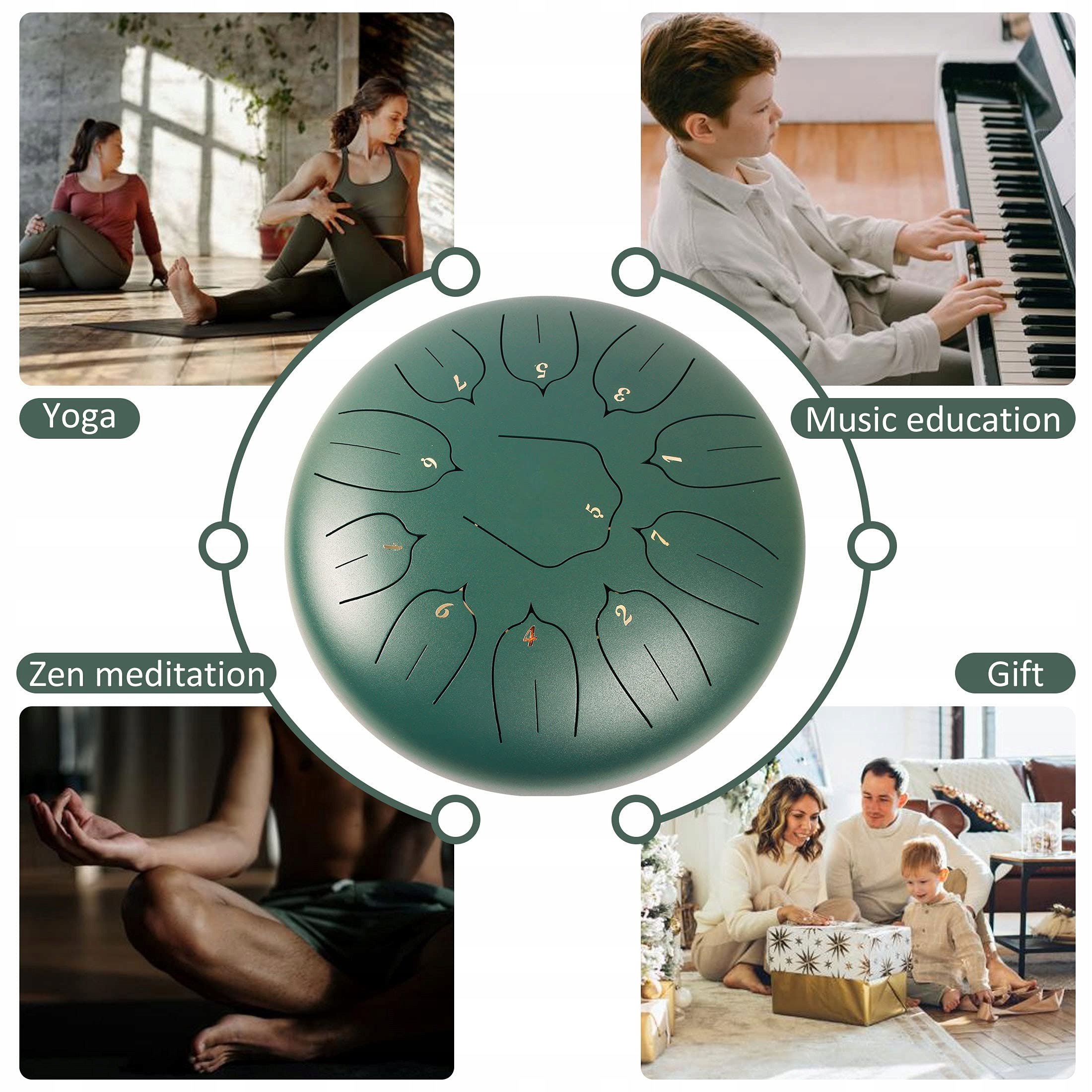 12 -дюймовий сталевий барабанний язик, ключ 11 тони барабана на сталевому язиці, сталевий язик, перкусію з 8 барабанними паличками/ мішечком (темно -зеленим)