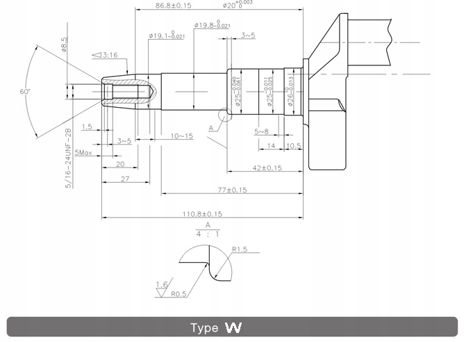 - Шпонка - прямокутна по всій довжині древка, ширина 4,78 мм