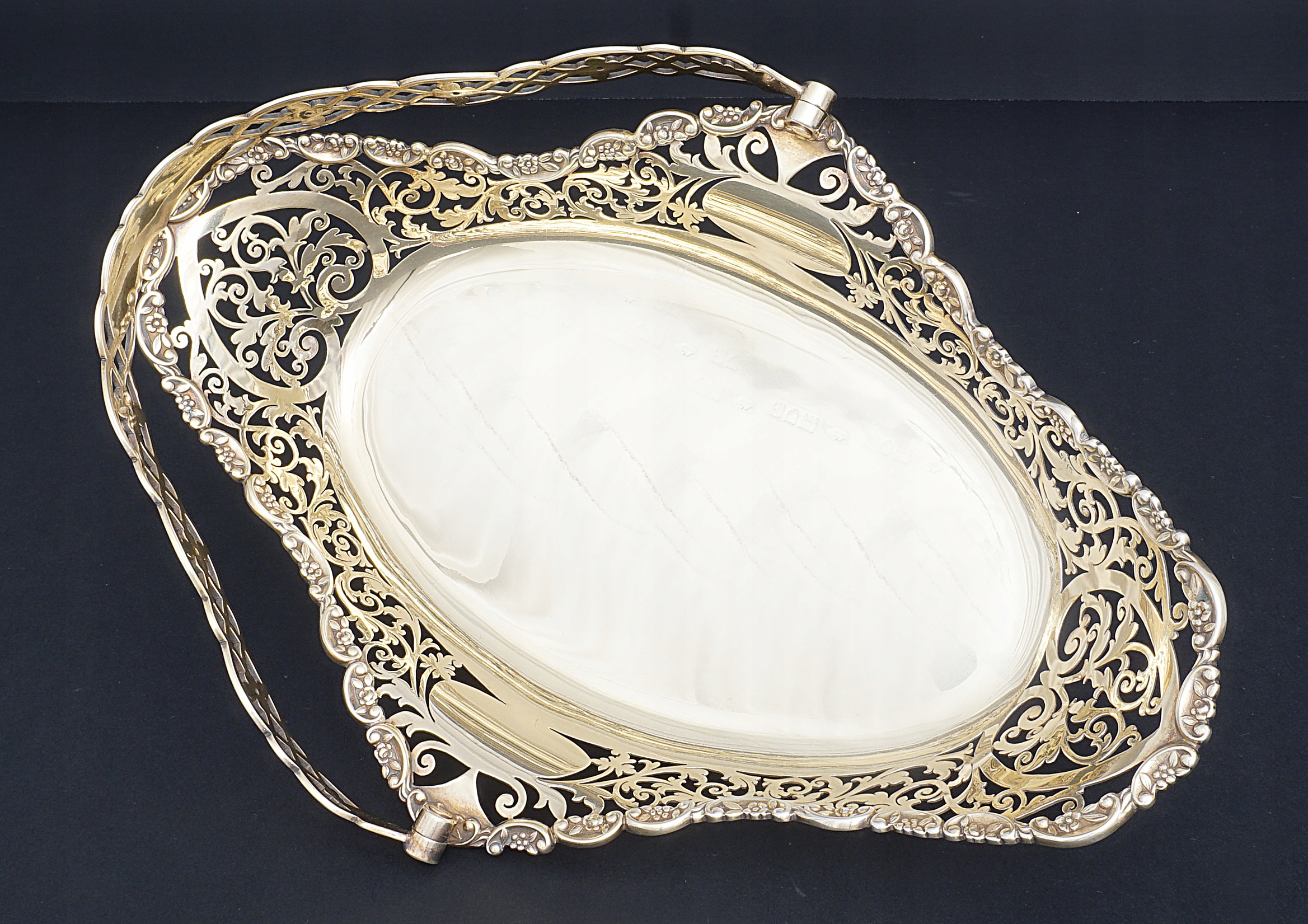Лондон 1898 - Патера / кошик з відкритою роботою - Золоте срібло - 29 см