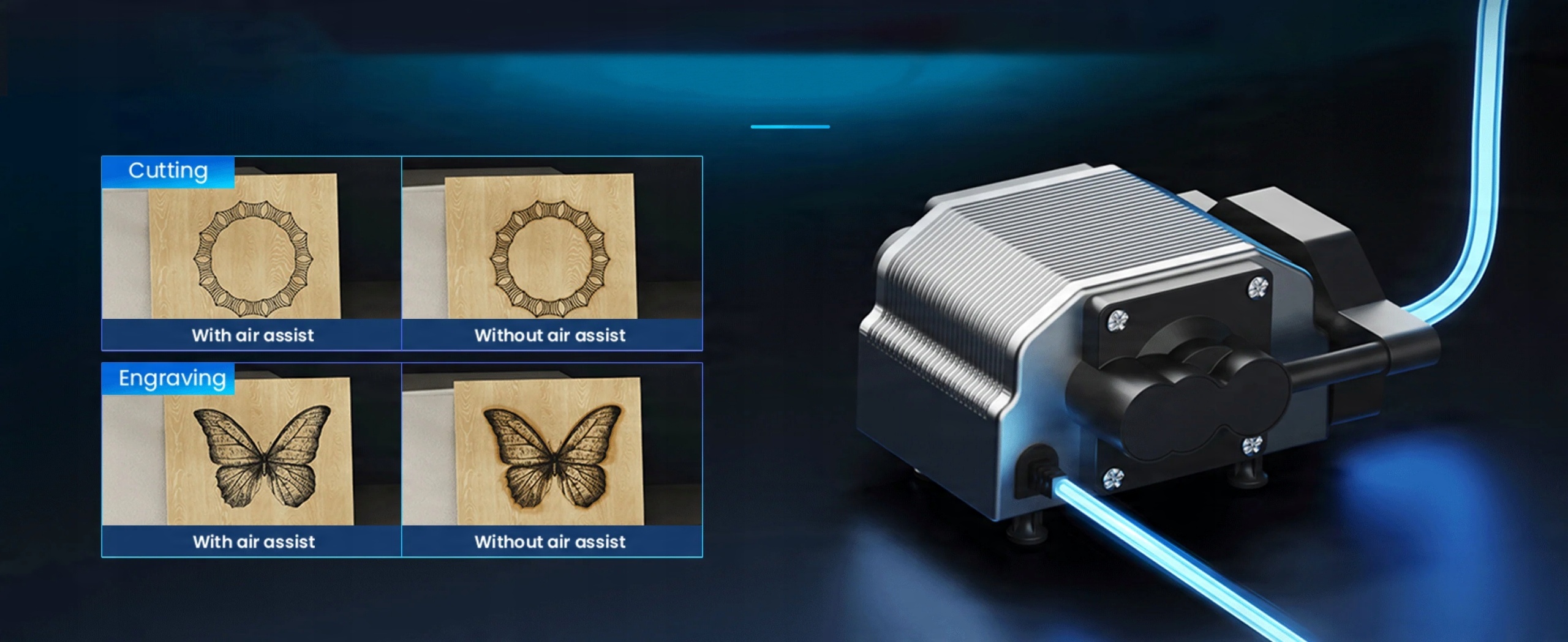 Насос Air-Assist може автоматично вмикатися та вимикатися, і ним безпосередньо керує освітлення, покращуючи точність і якість різання.