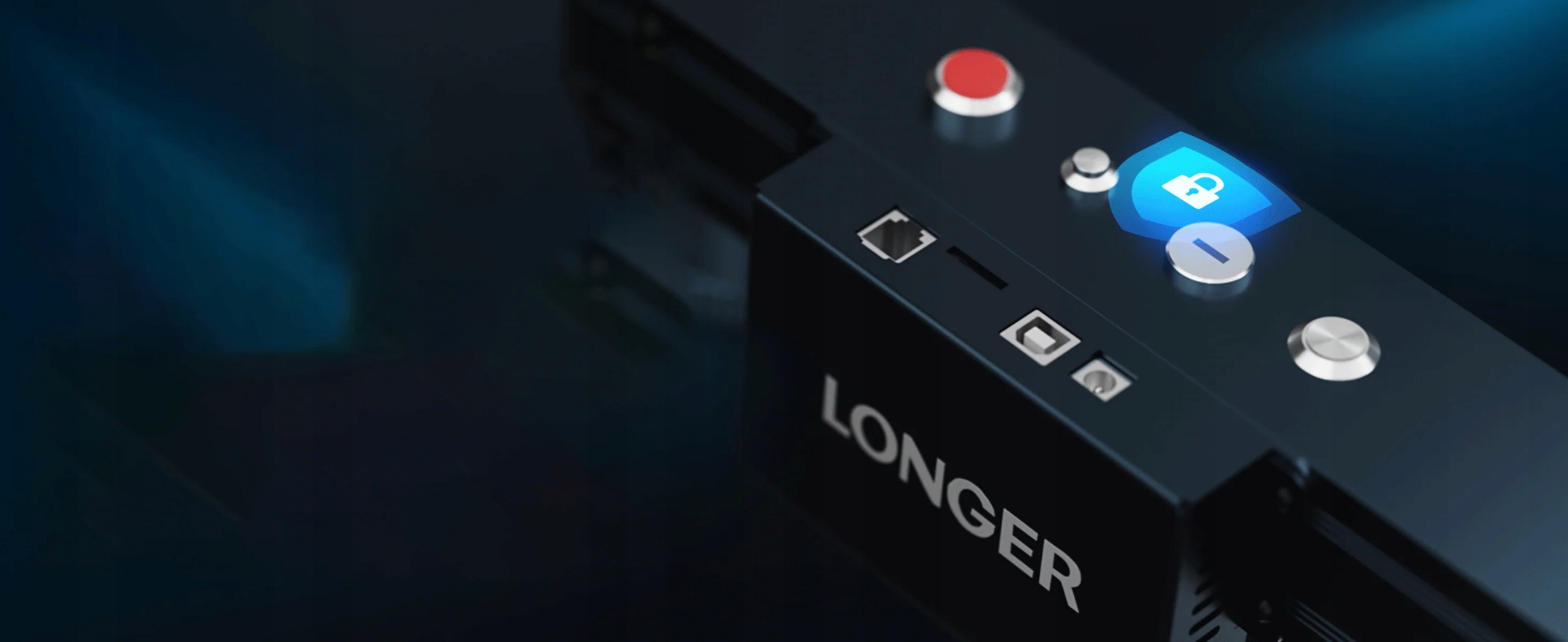 Longer Laser B1 має 8 функціональних функцій, а саме: рух/полум’я/вимкнення/стаціонарний/захисний замок/захист очей/кнопка аварійної зупинки/скидання на нуль. Лазерна головка автоматично повертається до нуля, щоб зупинити вигоряння під час запалювання