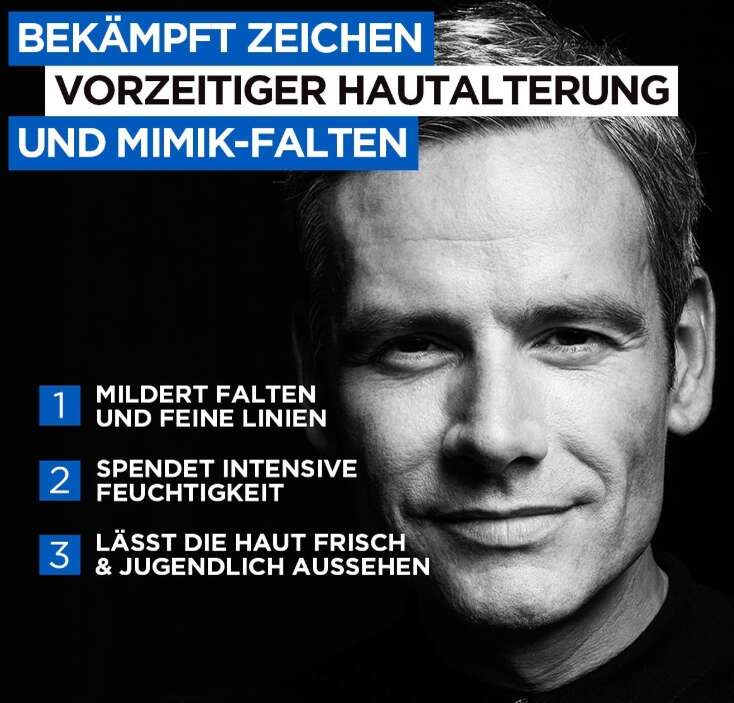 ВІДКРИЙТЕ ДЛЯ ВІДКРИТТЯ ЗВОЛОЖУЮЧИЙ КРЕМ ПРОТИ СТАРІННЯ, СПЕЦІАЛЬНО ДЛЯ ЗРІЛИХ ЧОЛОВІКІВ. VITA LIFT 5 ВІД L'ORÉAL MEN БОРЕТЬСЯ З 5 ОЗНАКАМИ СТАРІННЯ ШКІРИ: РОЗГЛАДЖУЄ ЗМОРШКИ, ЗВОЛОЖУЄ ТА ПІДГОТОВЛЮЄ ШКІРУ, ОСВІТЛЮЄ ШКІРУ, ЗМЕНШАЄ ЛУЩІННЯ. ДІЗНАЙТЕСЯ ПРО ЦЕ САМІ!