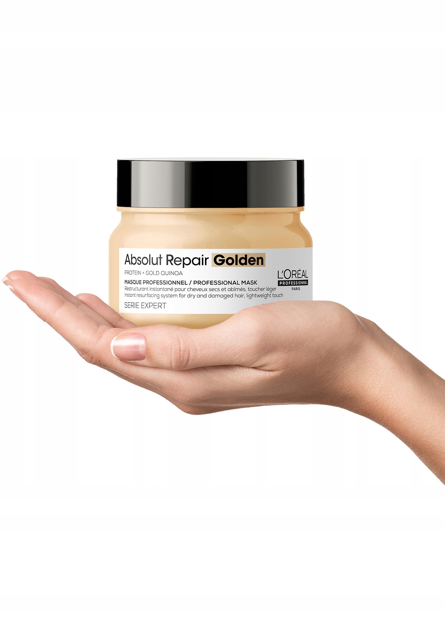 Інтенсивно живильна маска Absolut Repair Gold Quinoa, яка надає волоссю відчуття легкості. Професійна формула, збагачена екстрактом золотистих висівок кіноа та протеїном пшениці для швидкого відновлення волокна волосся та відчуття легкості. Волосся відразу стає м'яким і блискучим. Формула не осідає на волокні волосся.
