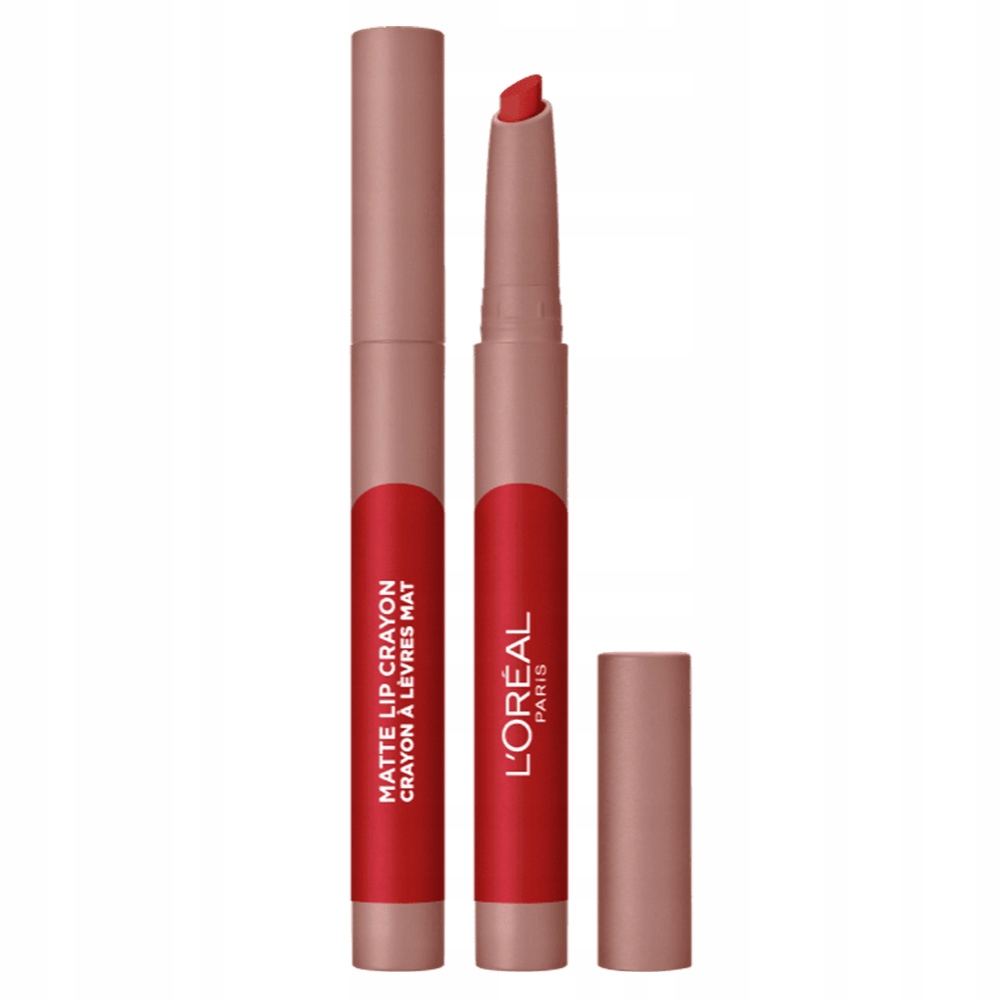 Ця матова помада не лише забезпечує інтенсивне кольори, але й залишається ідеально цілий день, не розмазуючись за межі контуру губ. Кремова суміш, збагачена олією жожоба та вітаміном Е, живить чутливу шкіру рота, гарантуючи захист, і в той же час їх не висушує. Помада пропонує матову обробку та довгий ефект. Безперебійний матовий олівець - це помада в зручній формі олівця L'Oreal Paris, яка дозволяє точно намалювати контур і легке наповнення губ інтенсивним кольором.