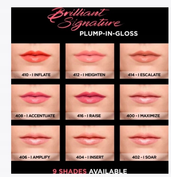 l'Oreal блискучий підпис у блиску -бжижцік до абзацу він містить освітлювальні пігменти, що забезпечують ефект зволоженого та розширеного губи та сліпучого сяйва. Він має точний аплікатор, який дозволяє застосувати потрібну кількість продукту.
