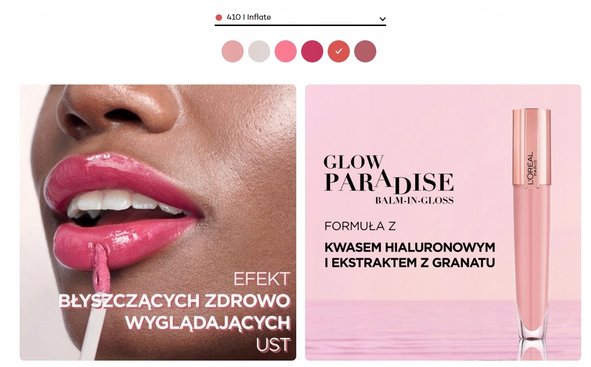 Glow Paradise Balm-In-Gloss від L'Oréal Paris-це діапазон 6 блискучих відтінків, натхненних світом догляду в макіяжі. Формула була збагачена гіалуроновою кислотою та гранатовим екстрактом, піклуючись про гідратацію та здоровий вигляд губ, а її текстура та запах забезпечують приємне застосування. Бальзам-в глос! Для ефекту доглянуті та блискучі губи. Ми того варті.