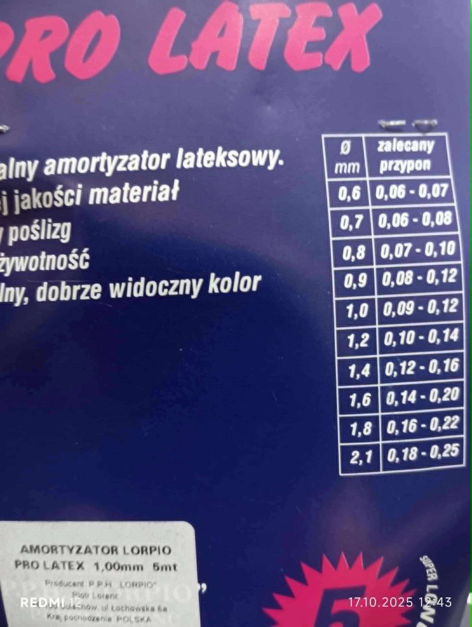 LORPIO LATEX АМОРТИЗАТОР PRO LATEX 5M 1.0MM AL-AL005