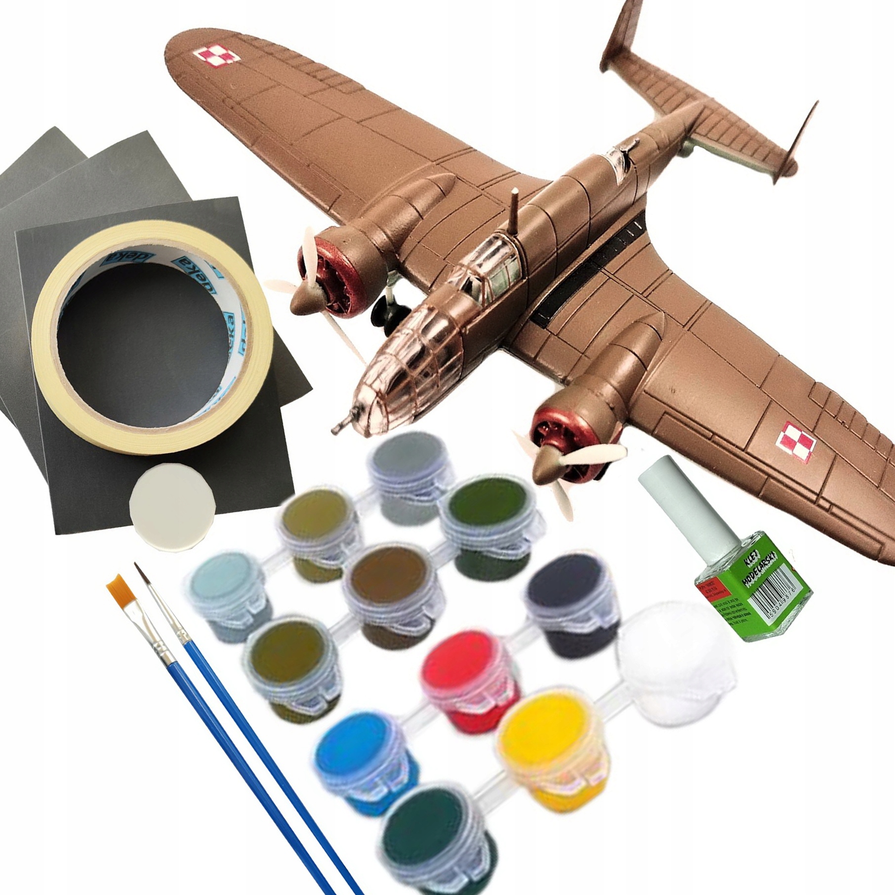 ЛОСЬ Збірка моделі літака для склеювання + ФАРБИ + КЛЕЙ + ШПАКТЕЛЬКА + ПЕНЗЛИКИ