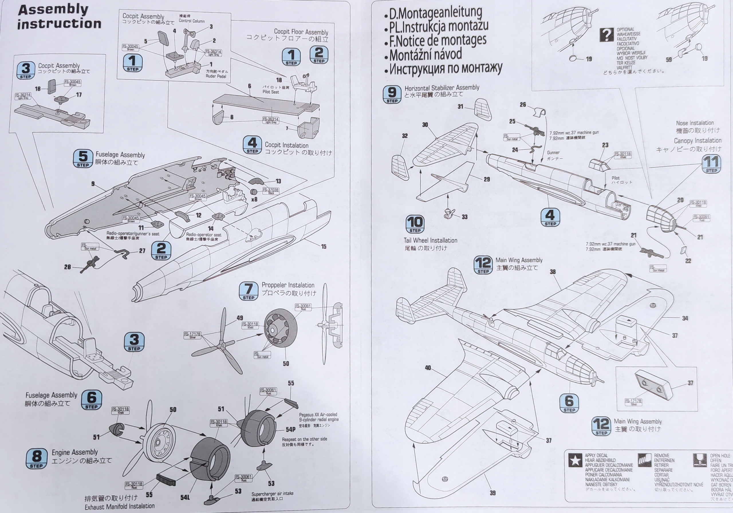Пластикові елементи слід вирізати з рам, підігнати та приклеїти відповідно до інструкції зі складання, що додається.