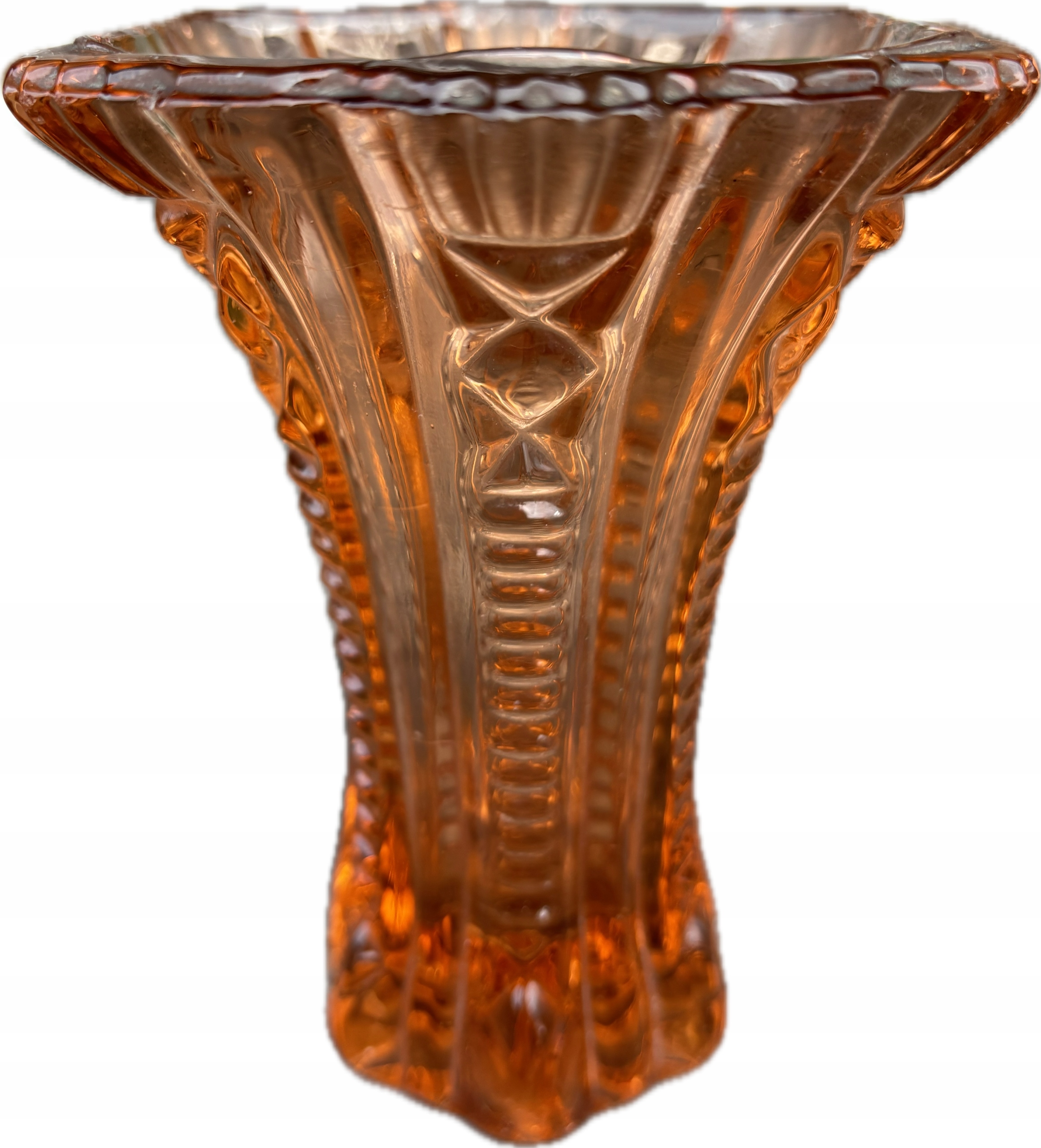 Скло з лососем ваза Huta Szkła Ząbkowice з періоду PRL. Розміри; Висота 13 х 10 см. Стан елемента, показаного на доданих фотографіях. Розплетення в основі, чіпання на край.