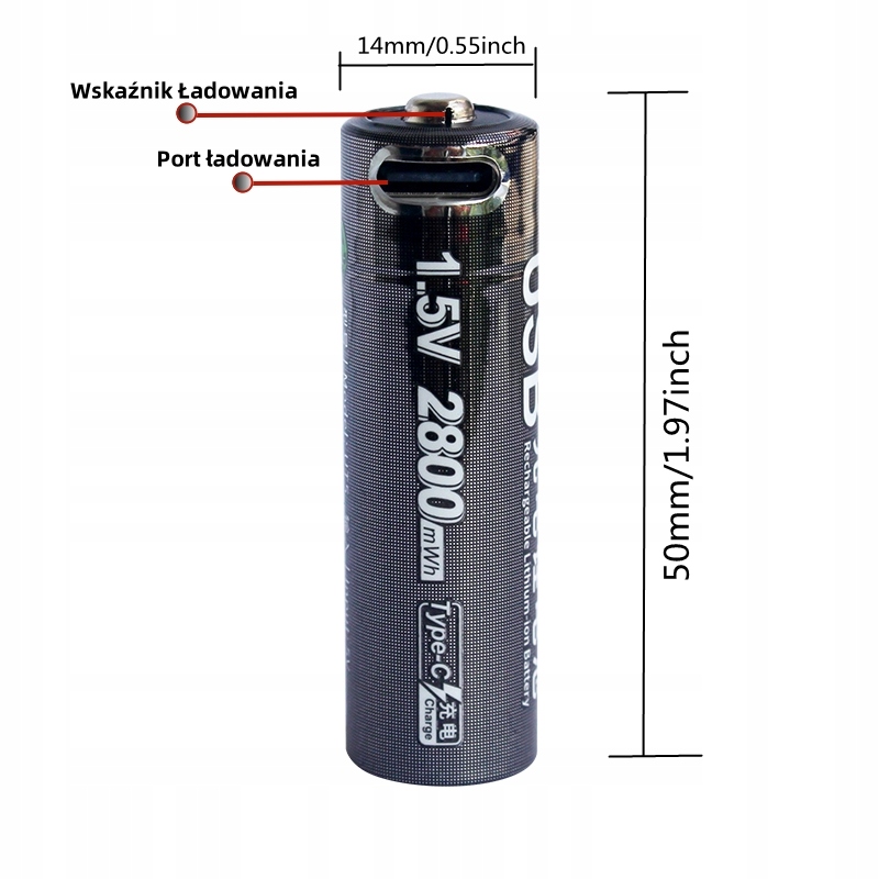 Lotkee USB Type-C AA батареї (R6), 1,5 В LITOWA Акумулятор 2800 МВт.