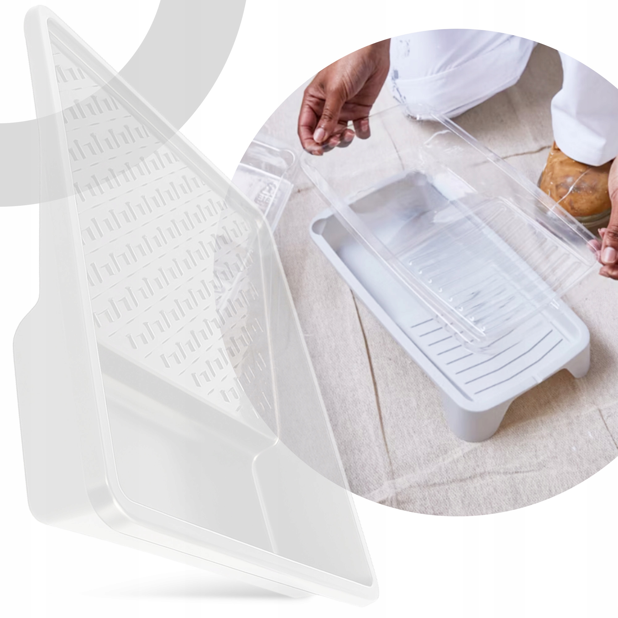 Полегшує нанесення фарби валиком без ризику забруднити довкілля. Прозора фольга забезпечує кращу видимість і легке дозування. Лоток не рухається під час роботи, а адаптована форма дозволяє зручно поводитися з малярським інструментом.