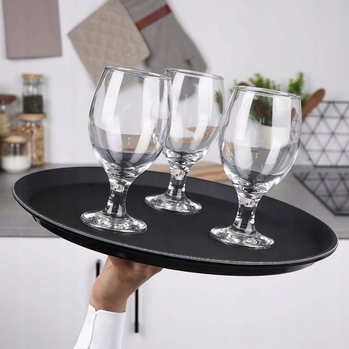 - має велику площу, що дозволяє розташувати численні страви, тарілки або окуляри. Ідеально підходить як піднос офіціанта, розміри в діаметрі 35 см і висотою 2 см. Матеріали в кольорі чорних, захищені ненаросним покриттям. Він характеризується високою міцністю з одночасною легкістю, яка гарантує довгострокове використання. зменшує ризик аварій.