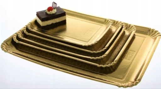 Елітний піднос з жорсткого картону, золото. «Права» сторона покрита золотою фольгою. Високоякісний виріб, призначений для викладки, пакування та транспортування різних видів харчових продуктів.