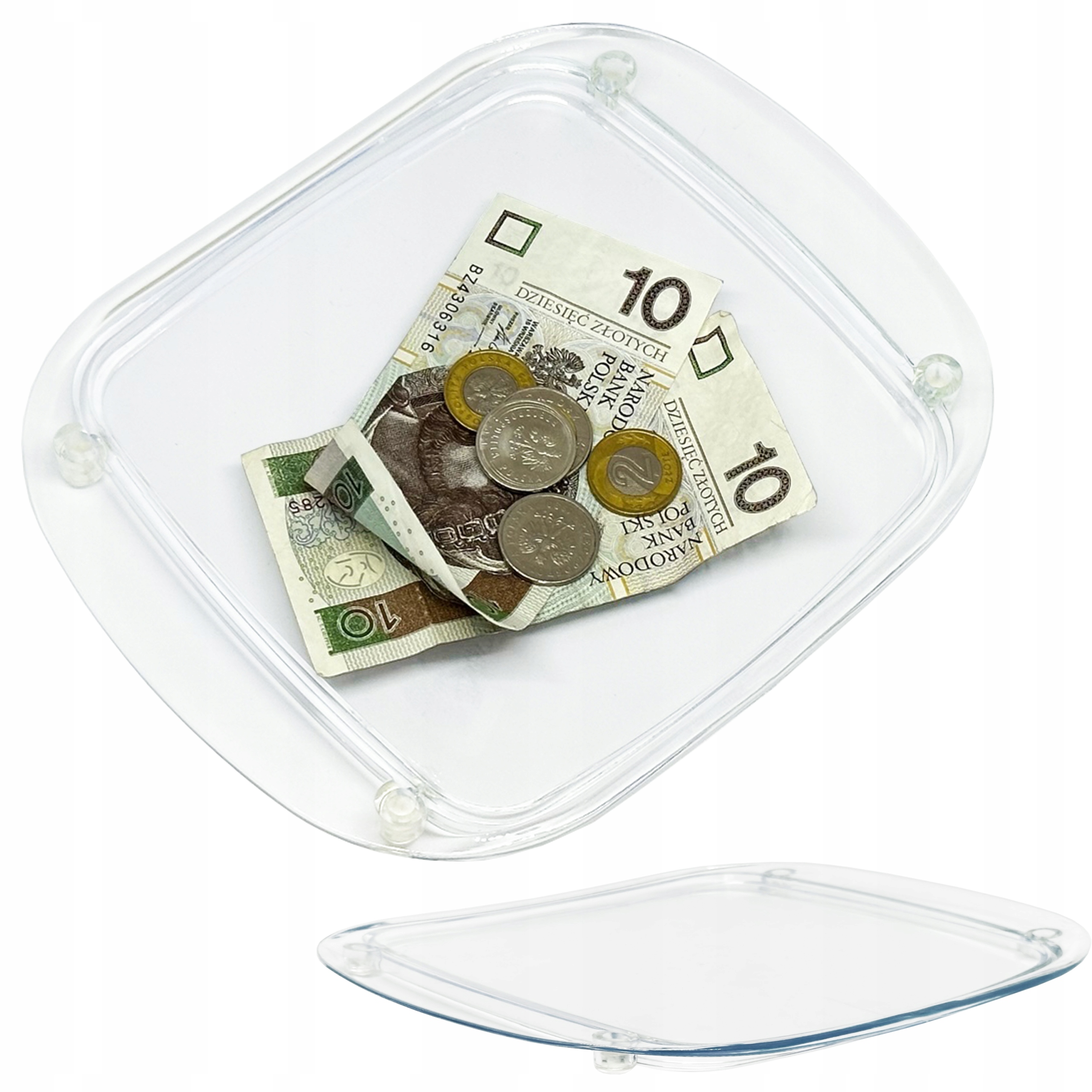 Двохелементна підставка для видачі монет - ідеальне рішення для обміну готівки. Оснащена подвійним дном, на ній можна розмістити ваш маленький рекламний банер, який не можна ігнорувати. Більше ніяких розкиданих монет і втрачених квитанцій!