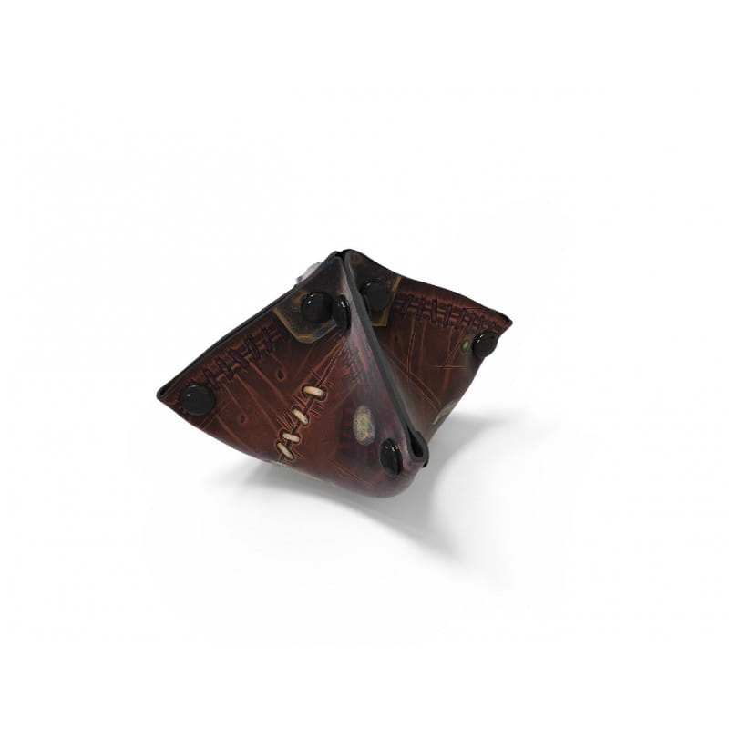 Підставка для кубиків виготовлена з гуми товщиною 2 мм, відомої з килимків для карткових ігор. По кутах є міцні пластикові застібки, завдяки яким ми можемо перетворити плоский килимок на миску для кидання кубиків.