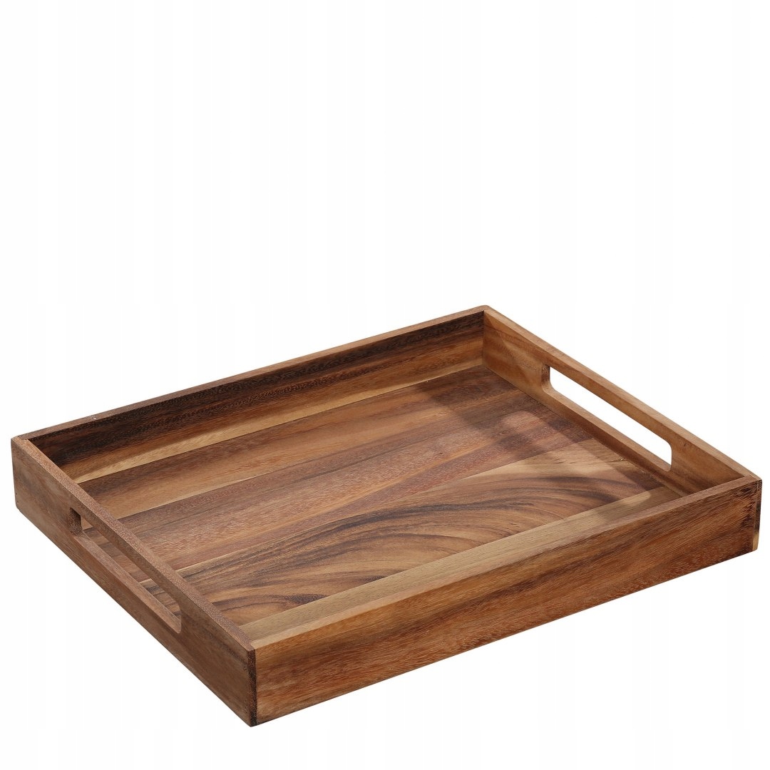 Zaslasenhaus портний лоток, дерев'яний прямокутний 44 х 36 х 6 см з ручками Лоток для сніданку Дерев'яний лоток Вкладка для страв Вуд Acacia, отриманий стійким способом