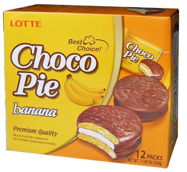 Choco Pie - це закуска, відома в усій Азії. Два печива зі смачним кремом з бананового зефіру всередині. Все було покрито шаром шоколадної глазурі. Вони неодмінно покращать настрій навіть у школі чи на роботі :)