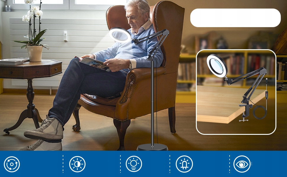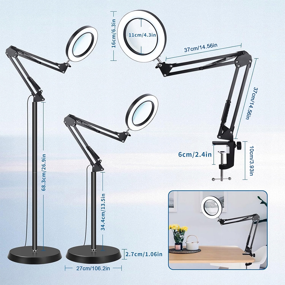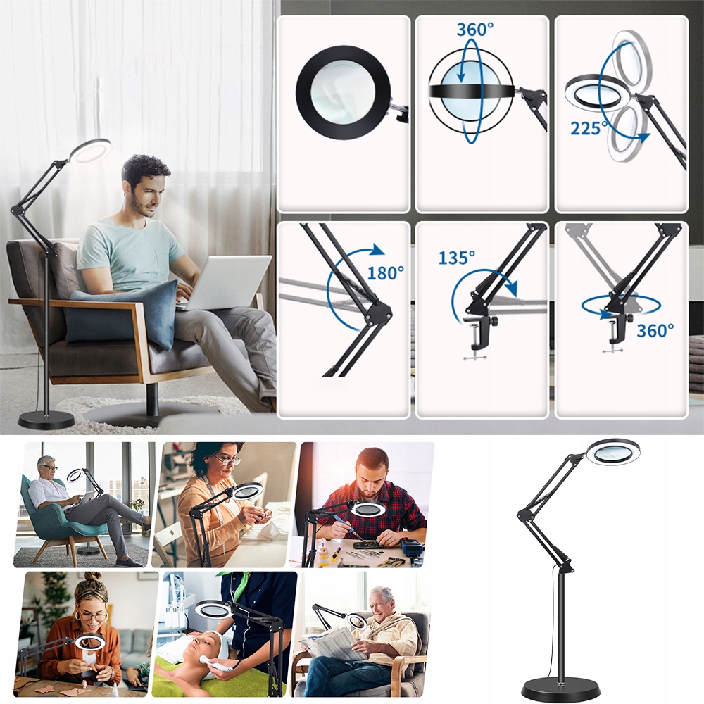 Заслуженого таблиці Збільшувального світла можна встановити в потрібному положенні, і воно залишається стабільним. Головка на 360 градусів ротаційна світло забезпечує більший кут використання. Обертова рука добре розширюється і дуже гнучка. Щоб прикріпити лупу, потрібно лише 10 секунд, щоб у вас були вільні руки, і ви можете прочитати газети, в'язати, ремонтувати, ремонтувати ювелірні вироби та насолоджуватися іншим мистецтвом та хобі.