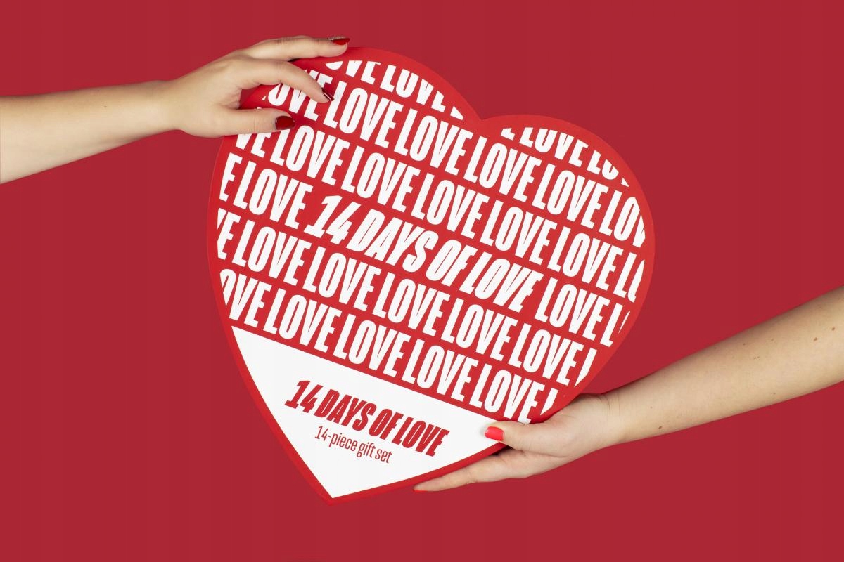 Подарунковий набір «14 днів кохання» — це коробка у формі серця з 14 відділеннями.