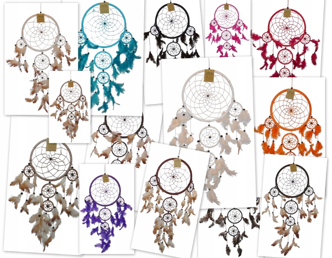Всі наші ловці зроблені вручну - обидва нитки, що обгортають коло, і фіксація пір’я - це ручна робота. Довжина кожного виловлювача відраховувала з початку підвіски до останнього пір'я. Кожен з них - це робота людських рук (а не виробництво стрічки); Тому може статися, що ловець буде трохи коротким або довшим, а самі пір’я можуть бути більш густо вбудованими, ніж на фотографії продукту.