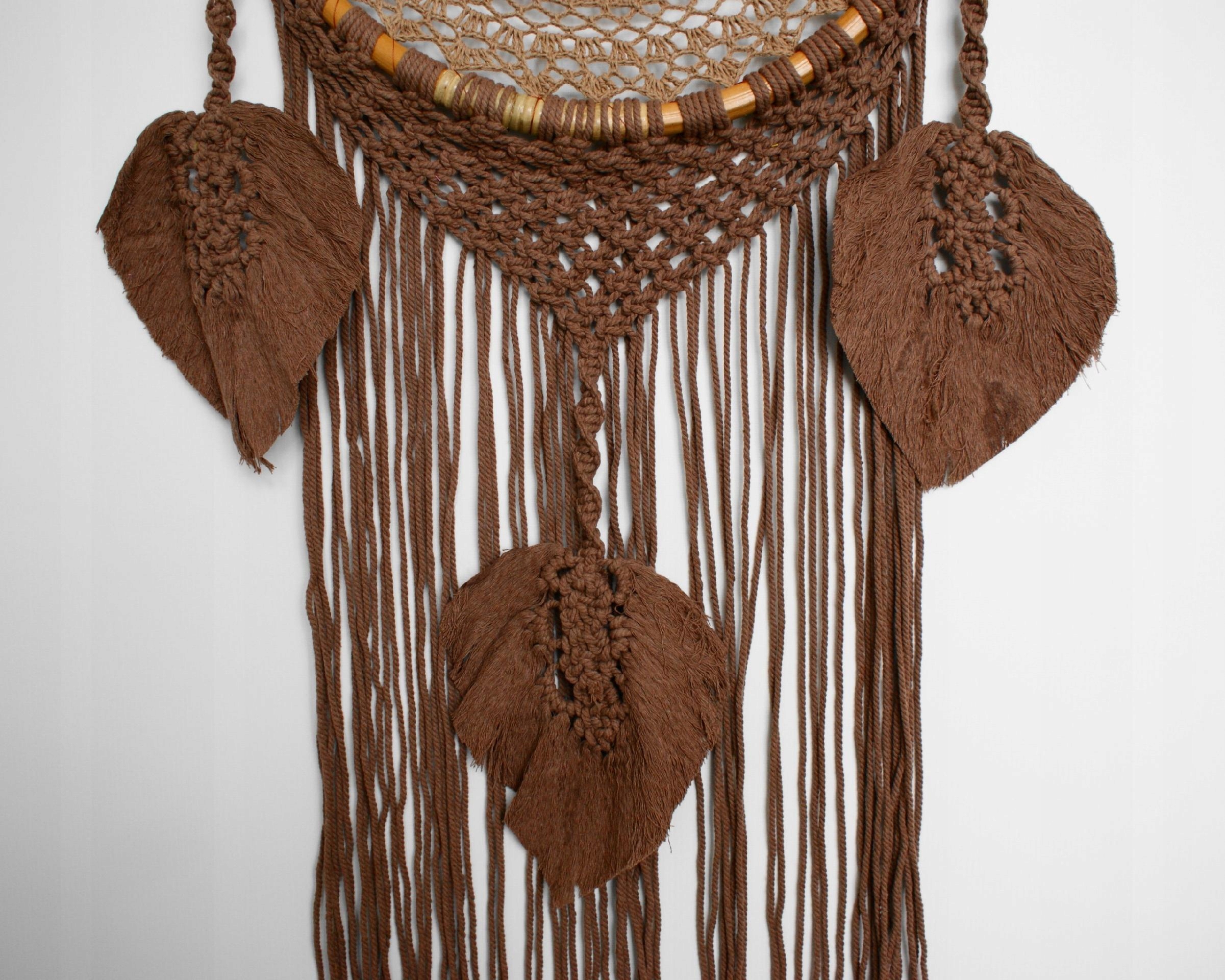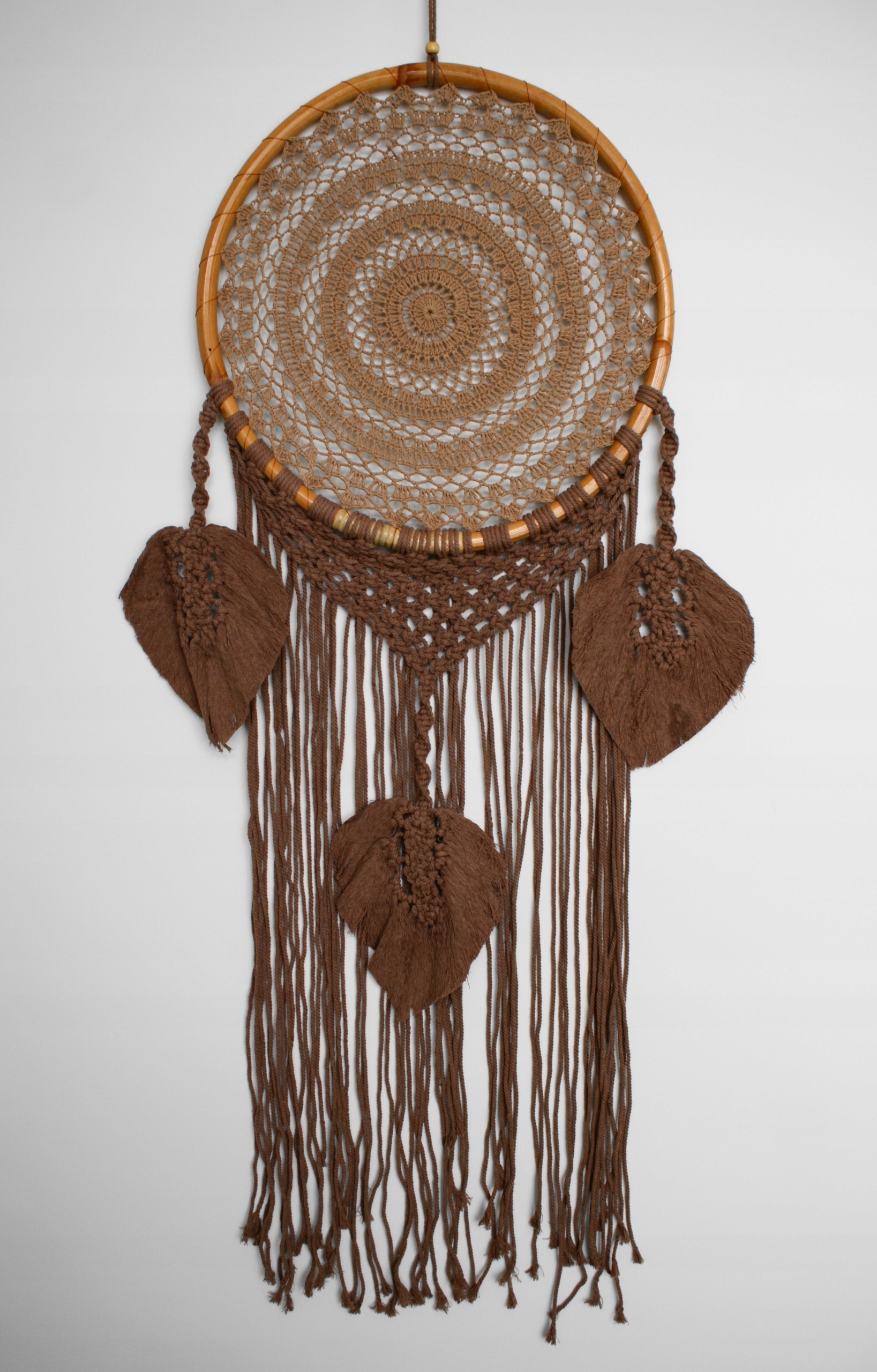 Декоративний ловець снів ручної роботи, одинарний з листям, бавовна, ротанг. Зроблено в Індонезії.