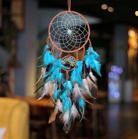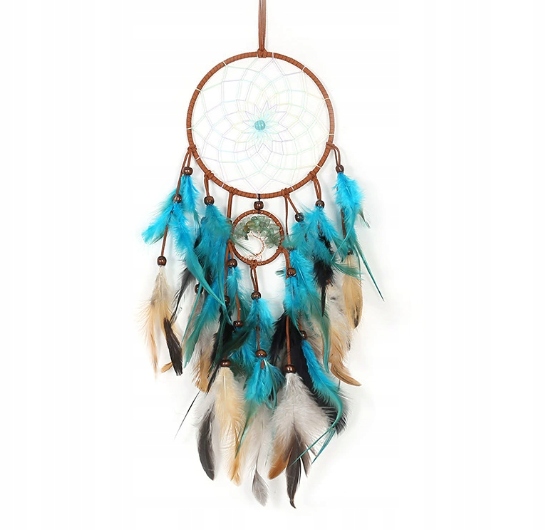 Ловець снів на дереві життя: світло-зелені кришталеві камені вплетені в листяне дерево життя, яке є дуже декоративним і має гарне значення. Водночас природні кришталеві камені мають певну енергетику та магнітне поле, яке здатне поглинати негативну енергію, дарувати духовну насолоду та натхнення, приносити людям щастя.