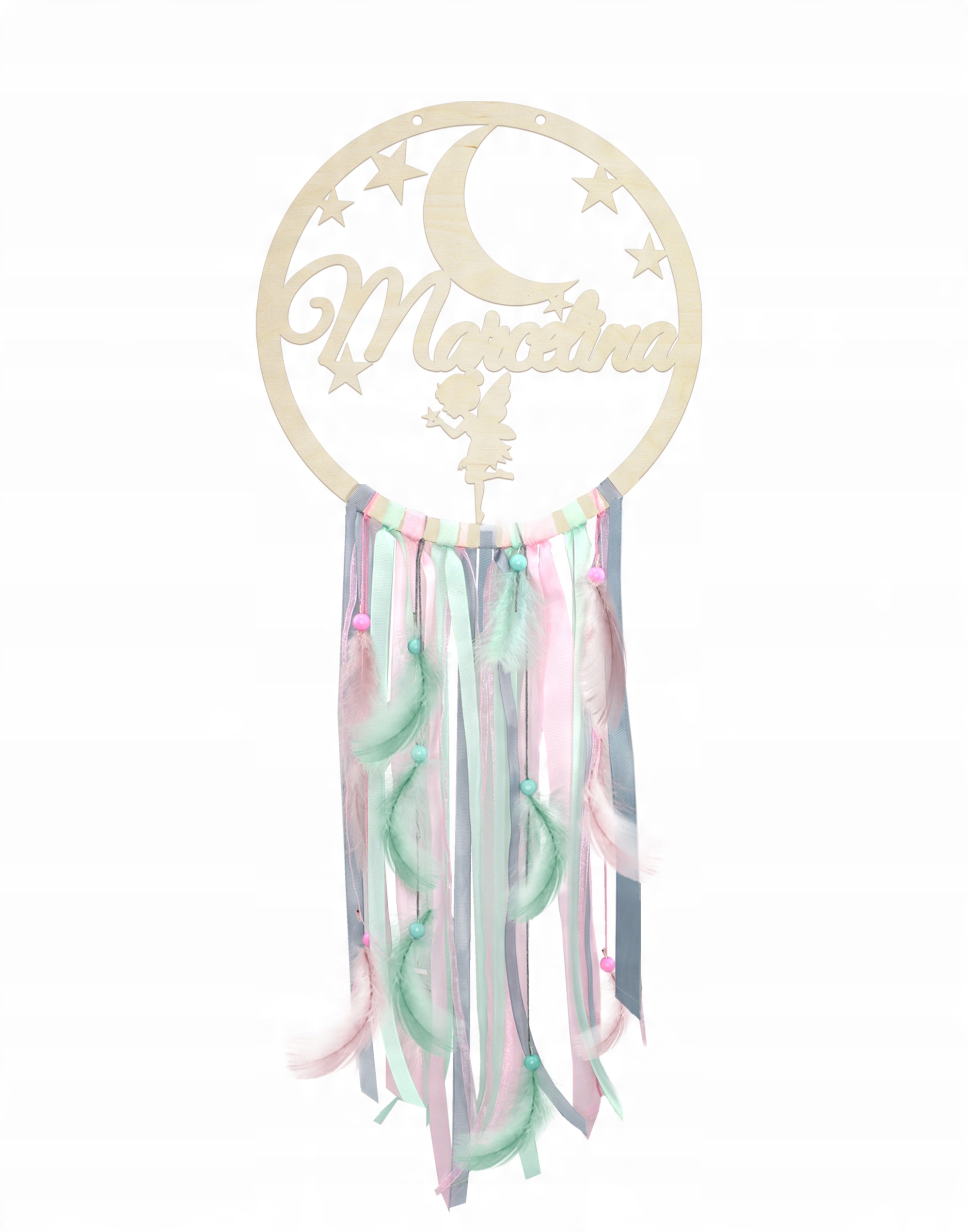 Ідеально як доповнення до дитячих кімнат, підвішених над ліжком малюка чи дитини старшого віку, або навіть до кімнати батьків. Дерев’яне оздоблення є чудовою ідеєю для подарунок.У верхній частині зроблений отвір, тому ловець можна без проблем повісити.