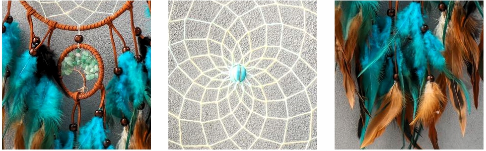 - Ловці снів ручної роботи, додатково ретельно відібране натуральне пір’я створює дуже цікаву ручну роботу