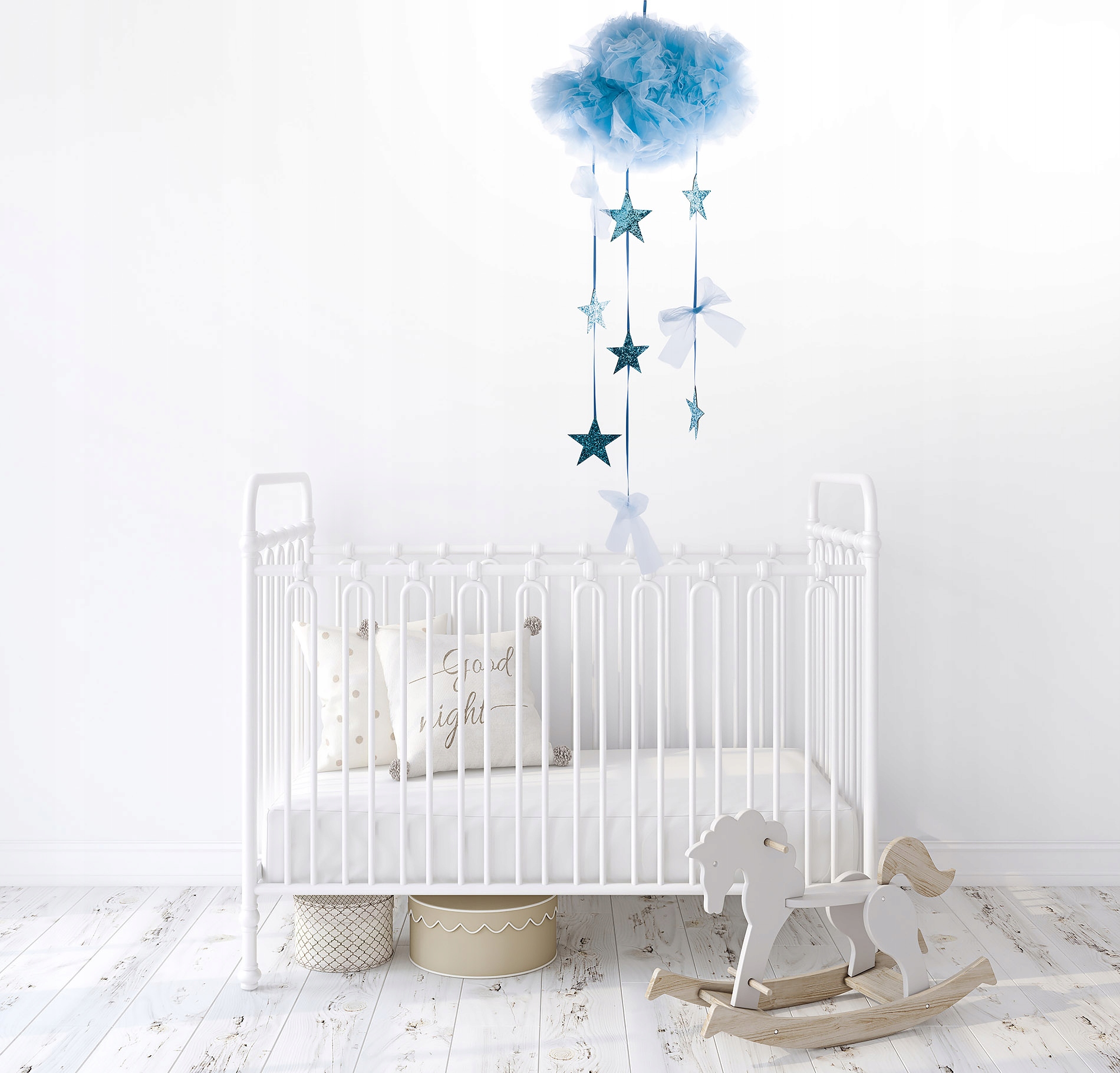 Наш ловець снів зроблений з тюлю пастельних відтінків, що імітує хмаринку, з мерехтливими зірочками та стрічками, які витончено звисають на нитках