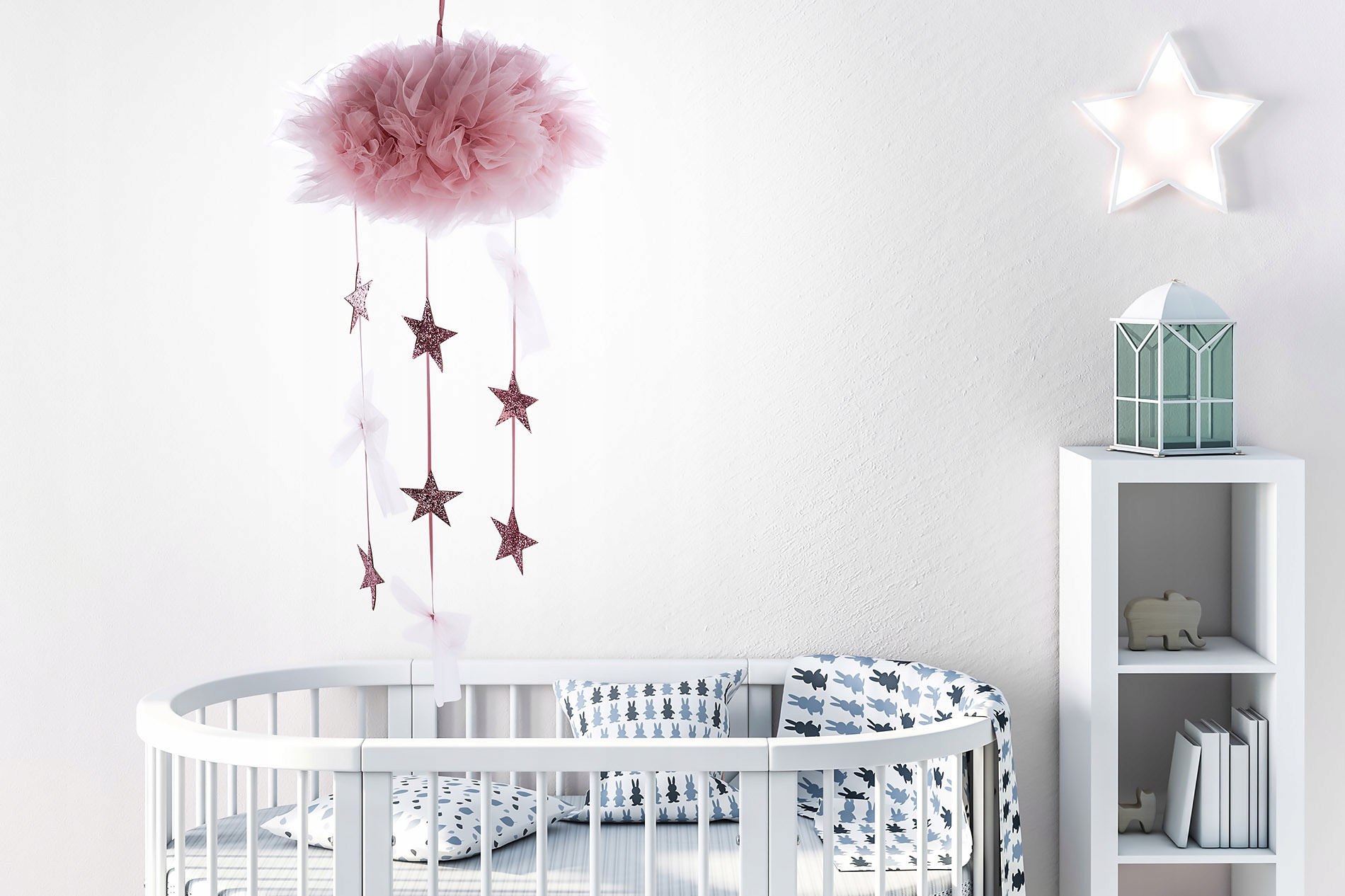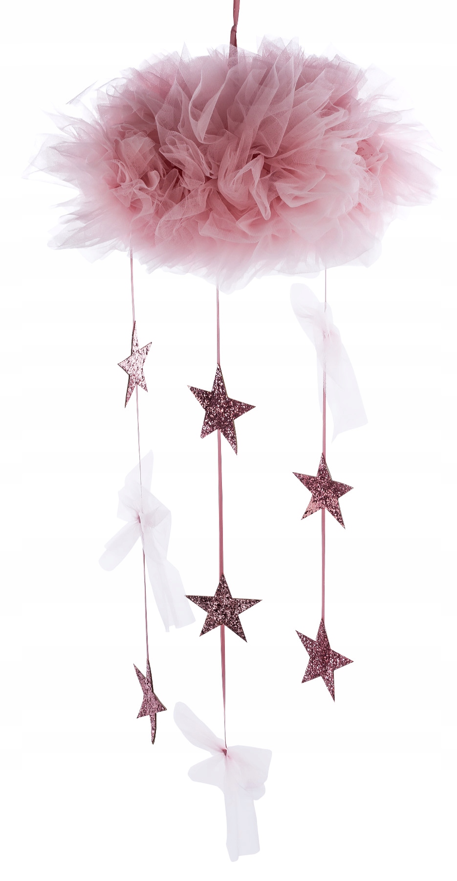 Наш ловець снів виготовлений із тюлю пастельних відтінків, що імітує хмаринку, з мерехтливими зірочками та стрічками, які витончено звисають на нитках