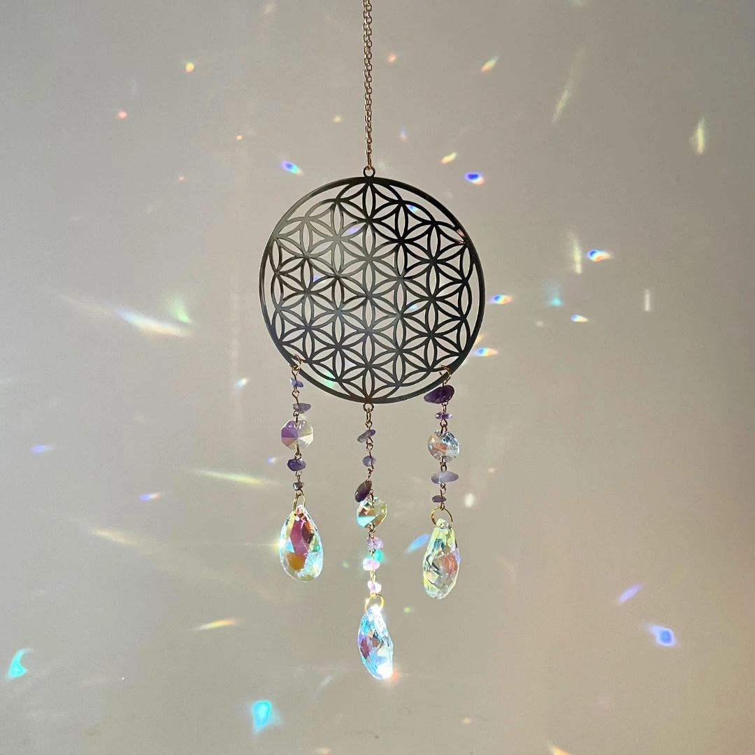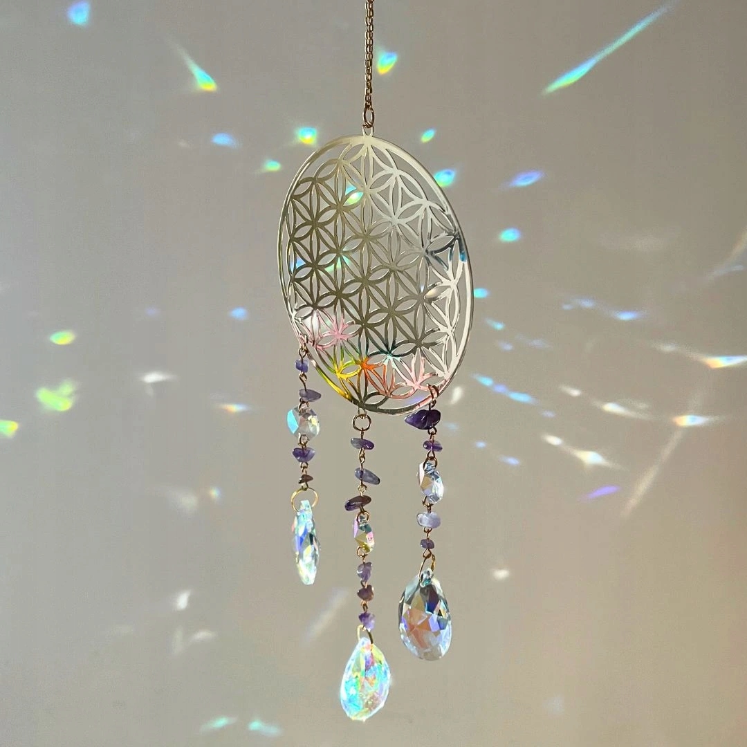 feng shui* ловець сонця - це не лише естетично привабливий, але й функціональний інструмент для гармонізації будинку. Цей продукт був розроблений відповідно до принципів фен -шуй, а це означає, що його розташування та будівництво ретельно продумують, щоб принести позитивну енергію та збалансувати потік енергії у вашому просторі. Ловець містить символ квітки життя та каменів аметистів. Кожен кристалічний елемент на ловці відволікає світло, створюючи чудову кольорову симфонію.