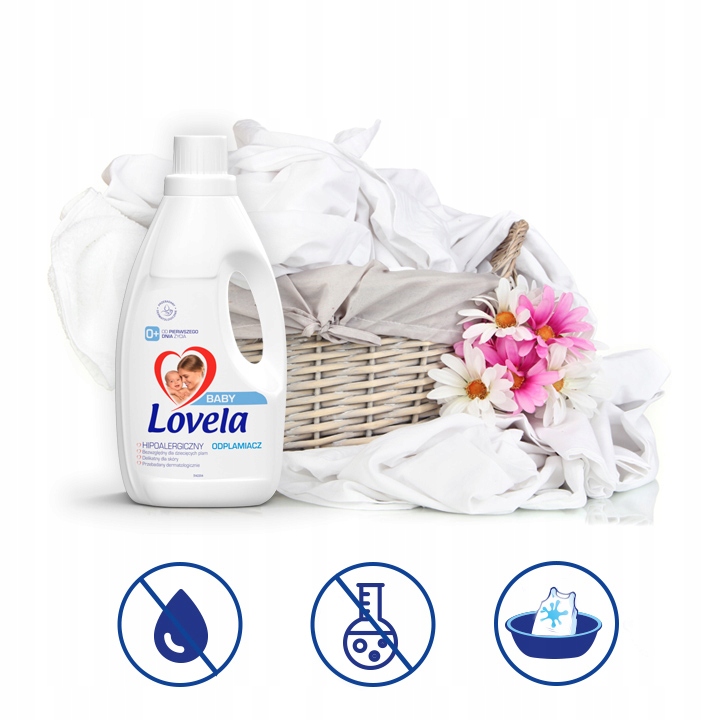 Гіпоалергенний засіб для виведення плям Lovela має ефективну, але ніжну формулу для шкіри немовлят і дітей. Дерматологічно протестовано, рекомендовано фахівцями. Він ідеально підходить для видалення типових дитячих плям, таких як їжа з банок, персиковий сік, трава, бруд і олівці. Він також видаляє білкові плями, наприклад, від молока чи йогурту, тому ідеально підходить для фарбування нижньої білизни та одягу матерів, які годують груддю.